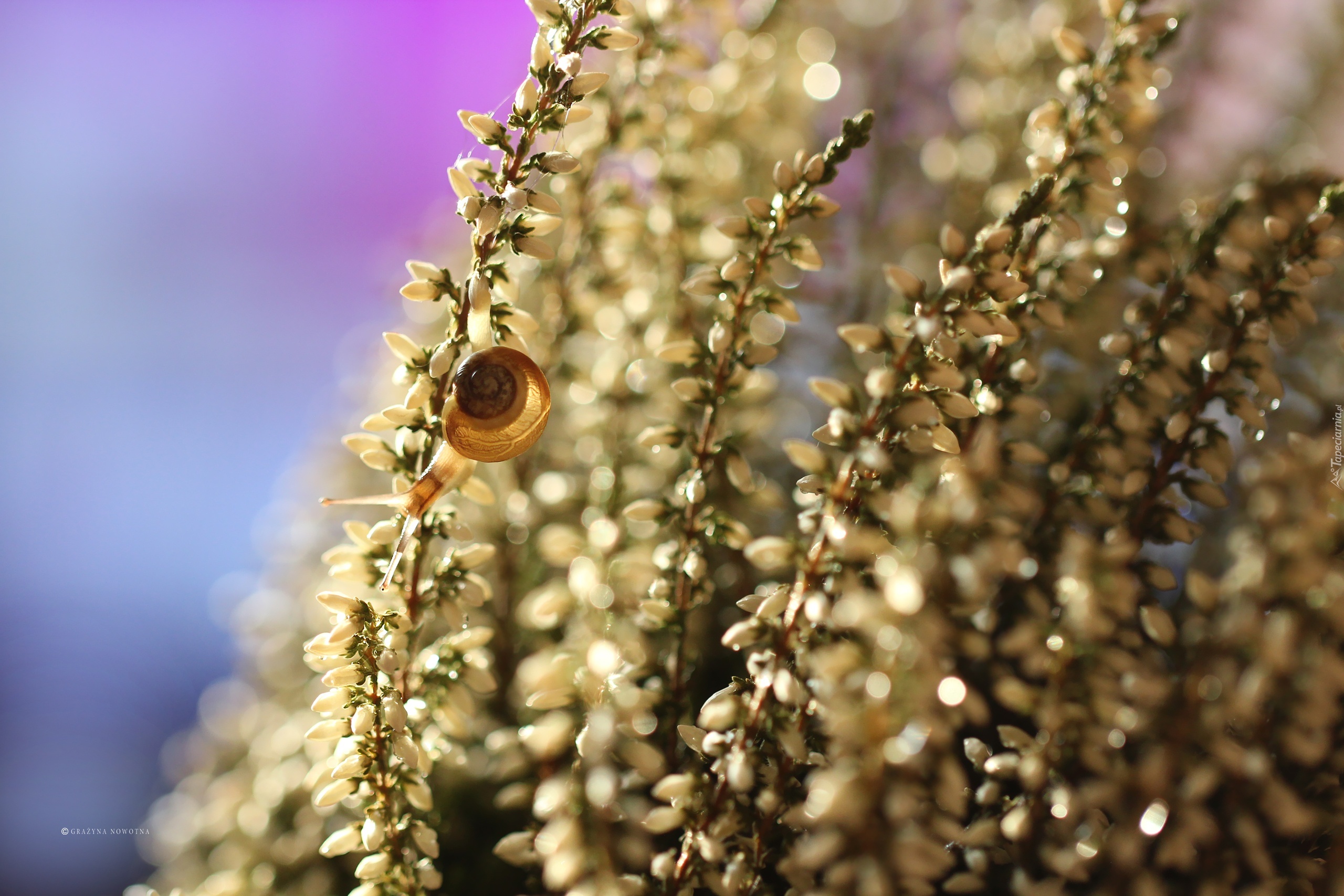 Edytor tapety: Białe, Wrzosy, Ślimak