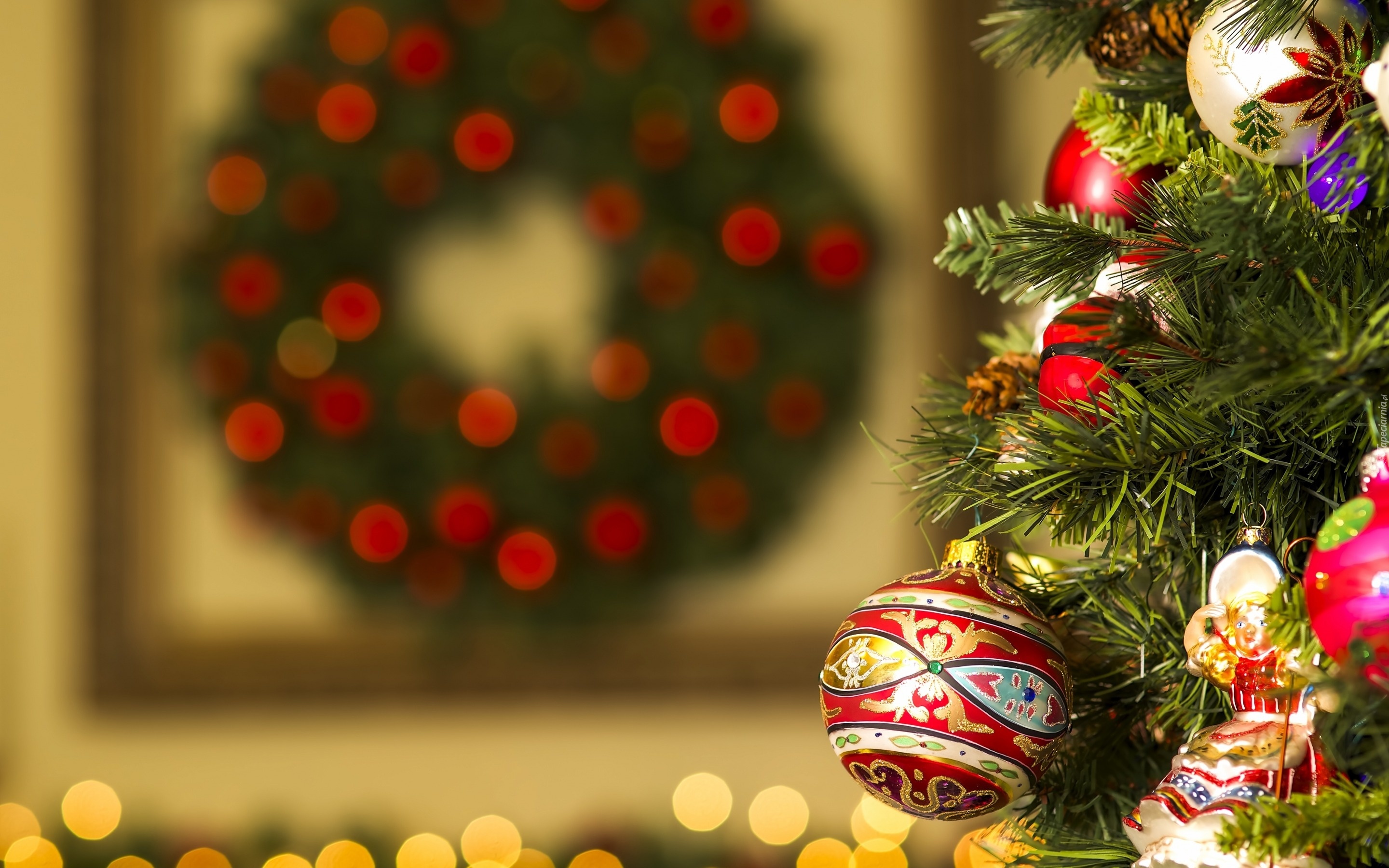 Edytor tapety: Choinka, Bombki, Wieniec, Rozmycie