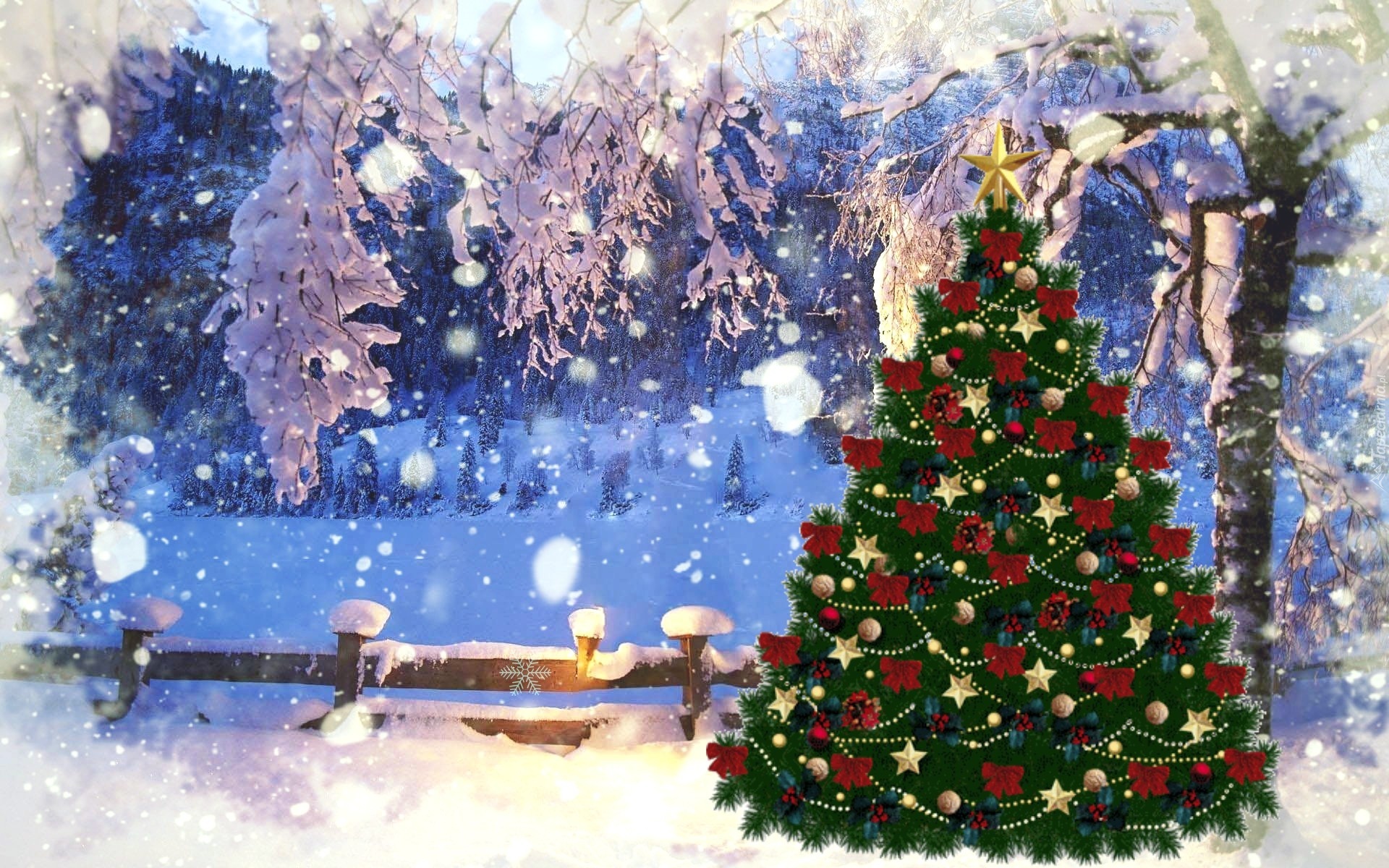 Edytor tapety: Zima, Śnieg, Choinka, Świąteczne