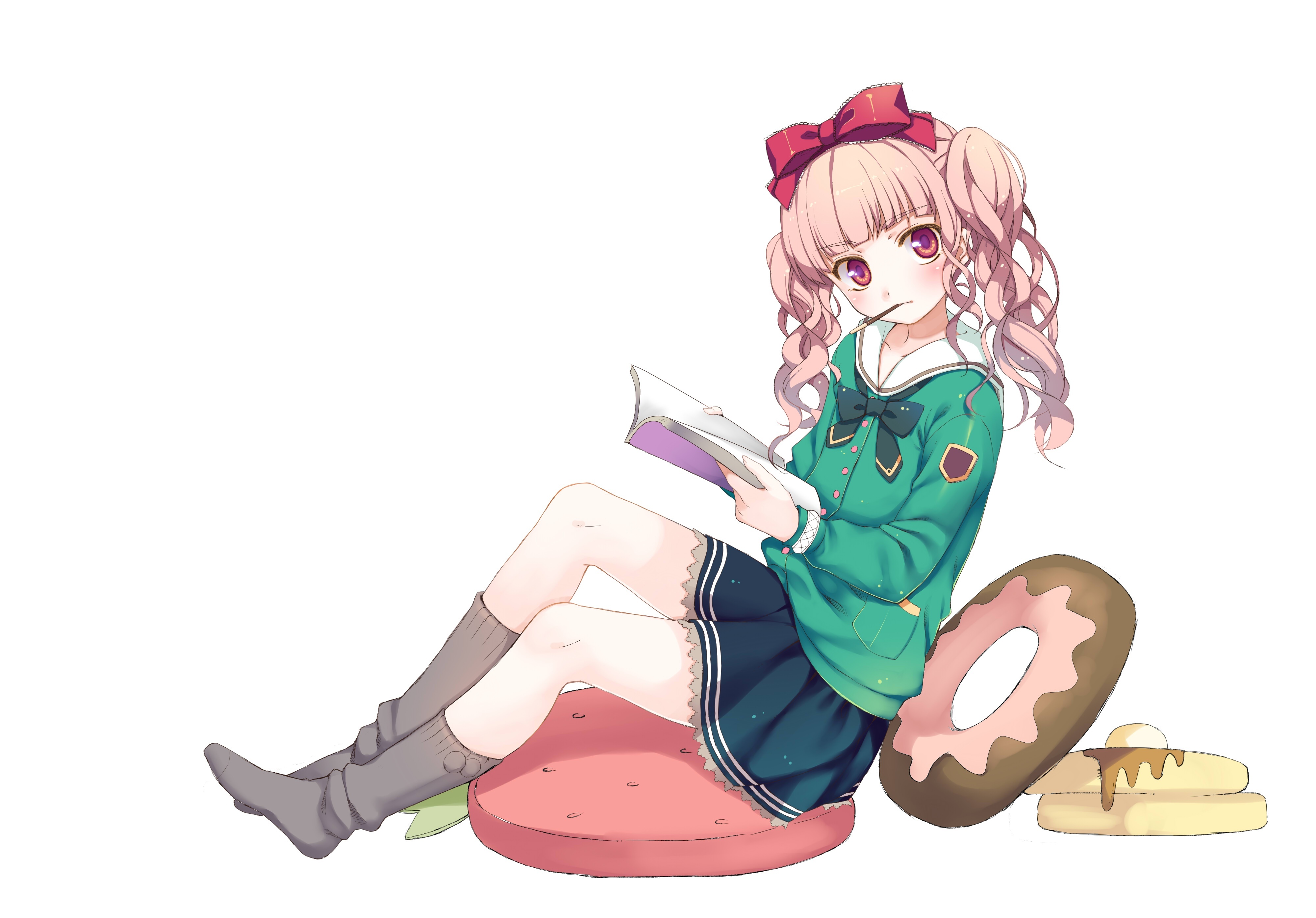 Edytor tapety: Dziewczyna, Jedzenie, Książka, Anime