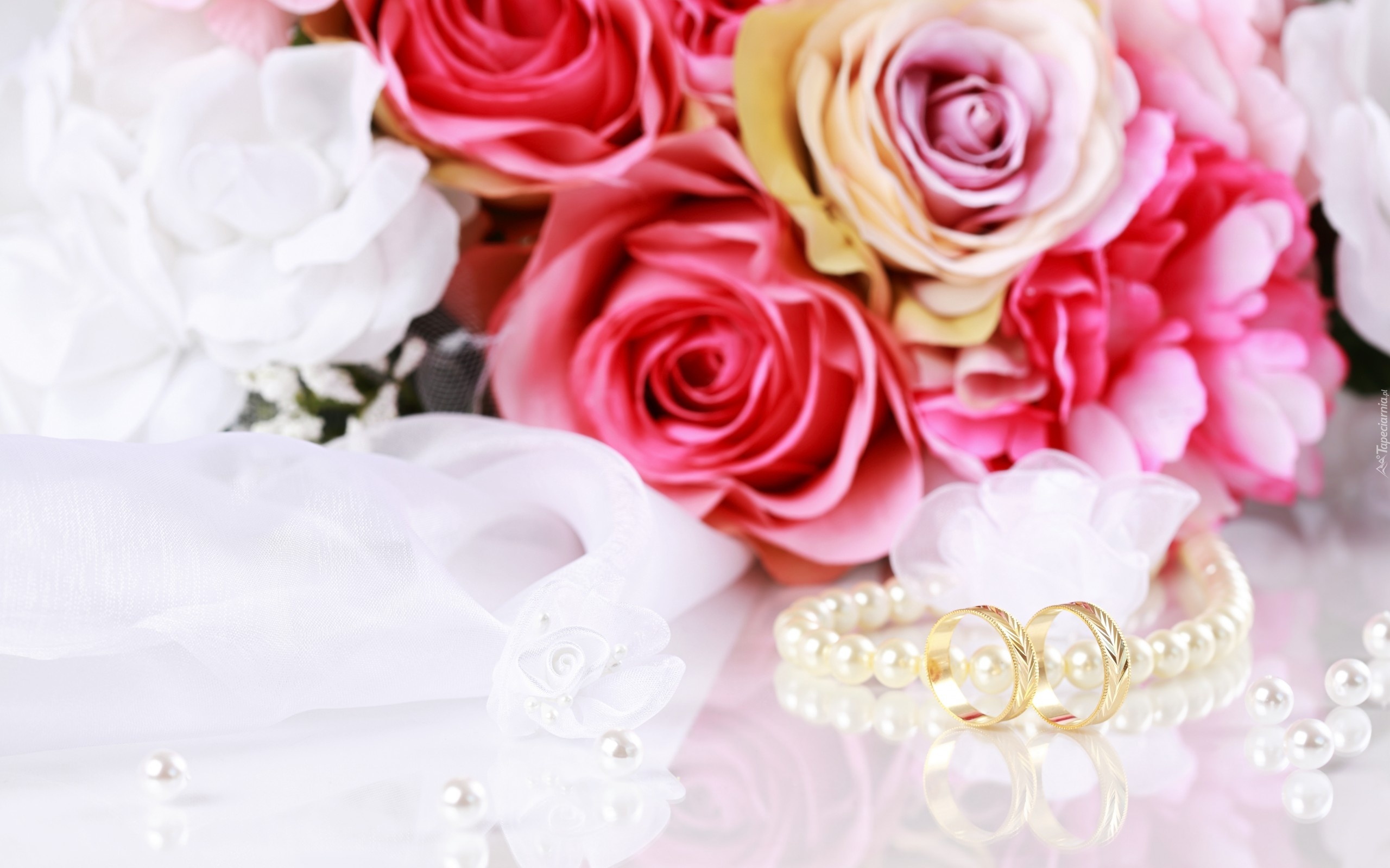 Edytor tapety: Róże, Bukiet Kwiatów, Obrączki, Perły, Ślubne