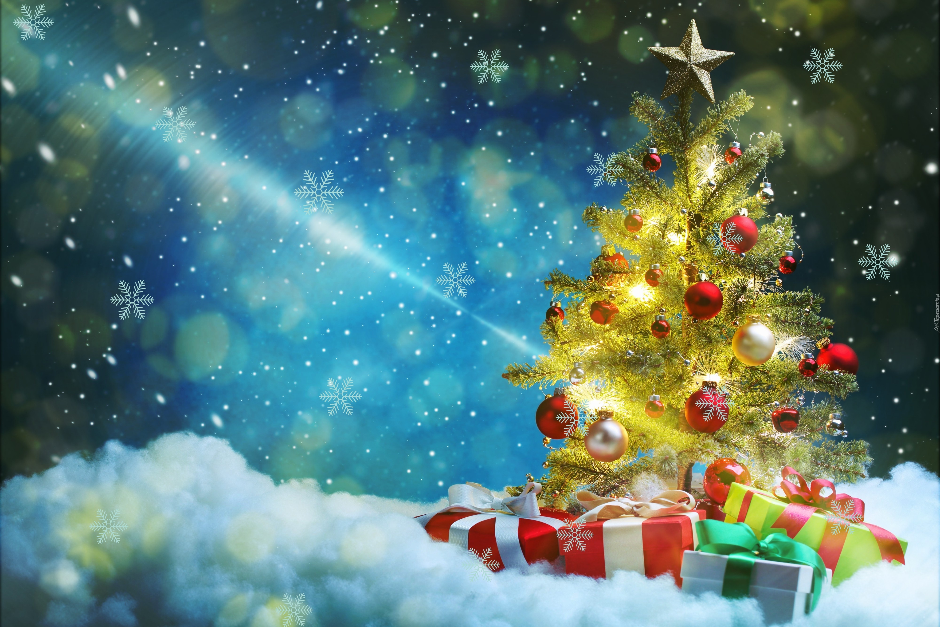 Edytor tapety: Choinka , Prezenty, Bombki, Śnieg, Gwiazdki, Śniegu