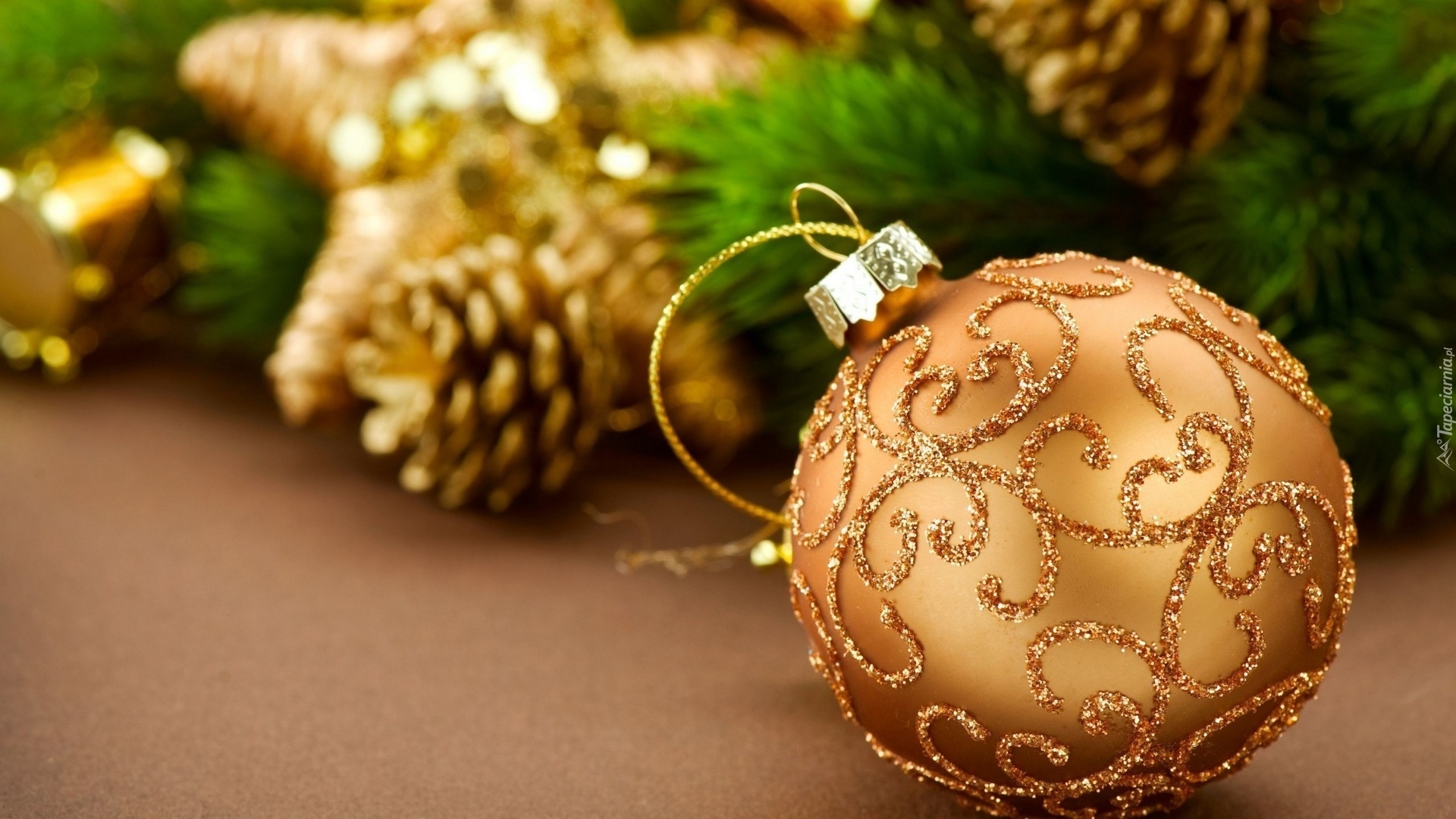 Edytor tapety: Święta, Dekoracja, Złota Bombka