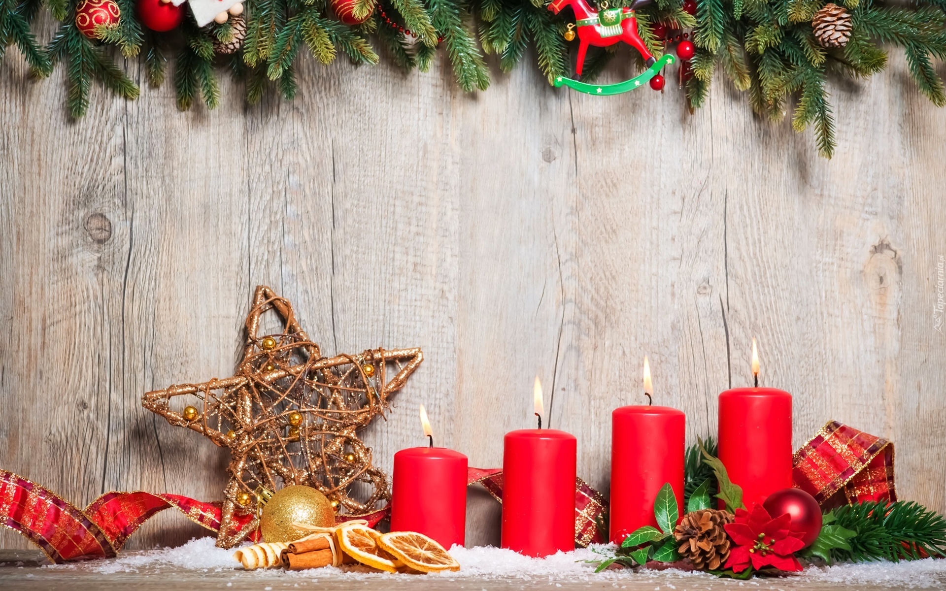 Edytor tapety: Ozdoby, Czerwone, Świece, Kompozycja, Świąteczna
