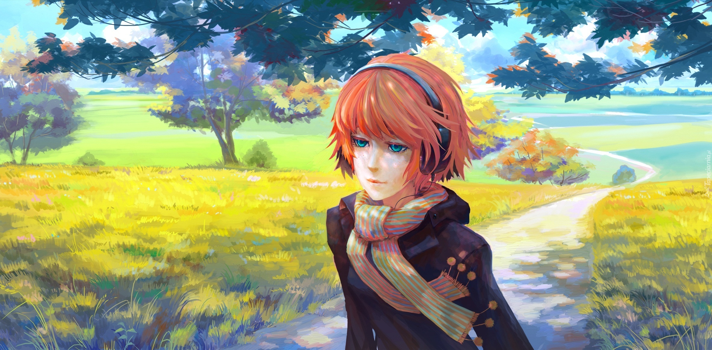 Edytor tapety: Dziewczyna, Droga, Słuchawki