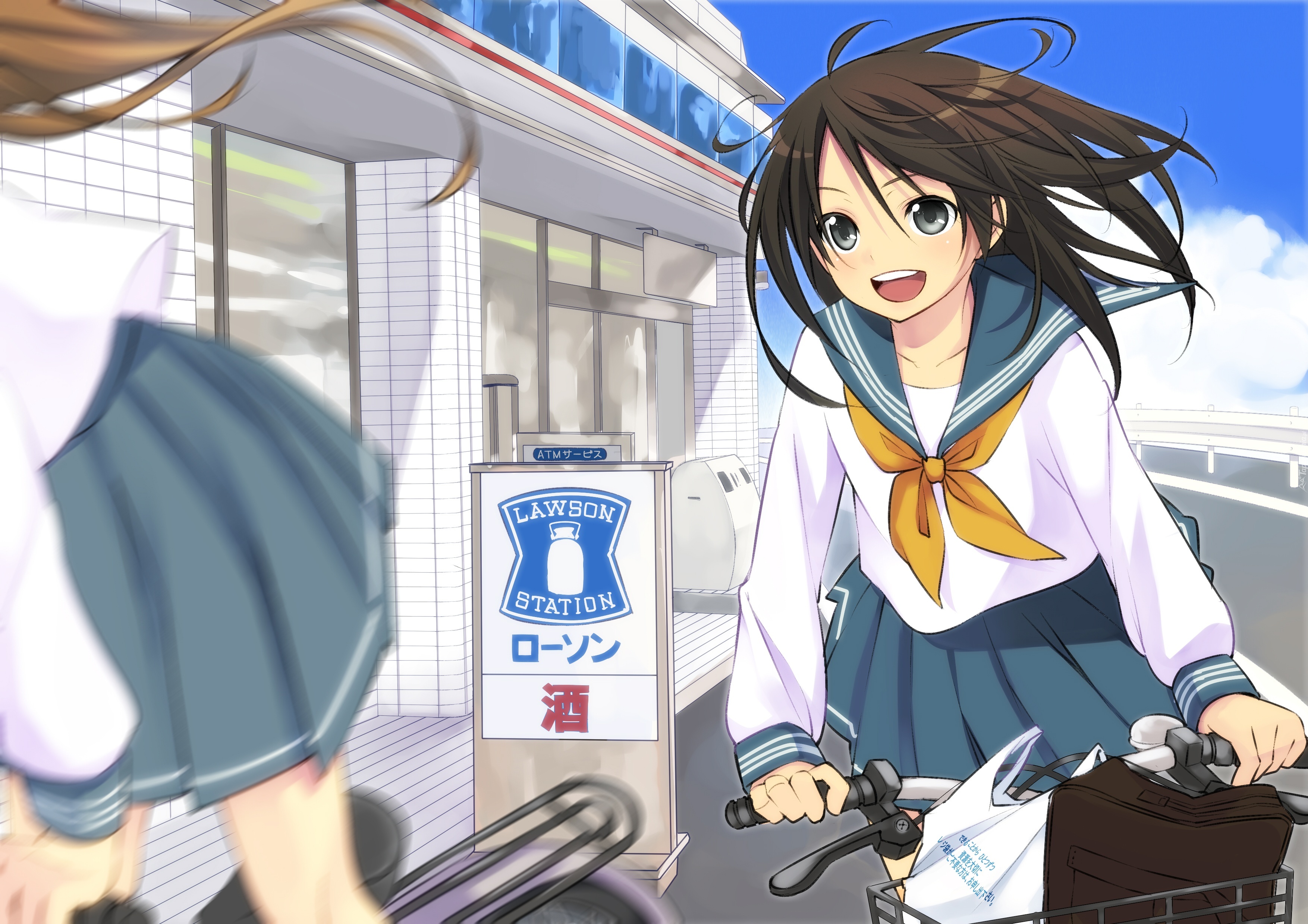 Edytor tapety: Dziewczyny, Rowery, Ulica, Anime