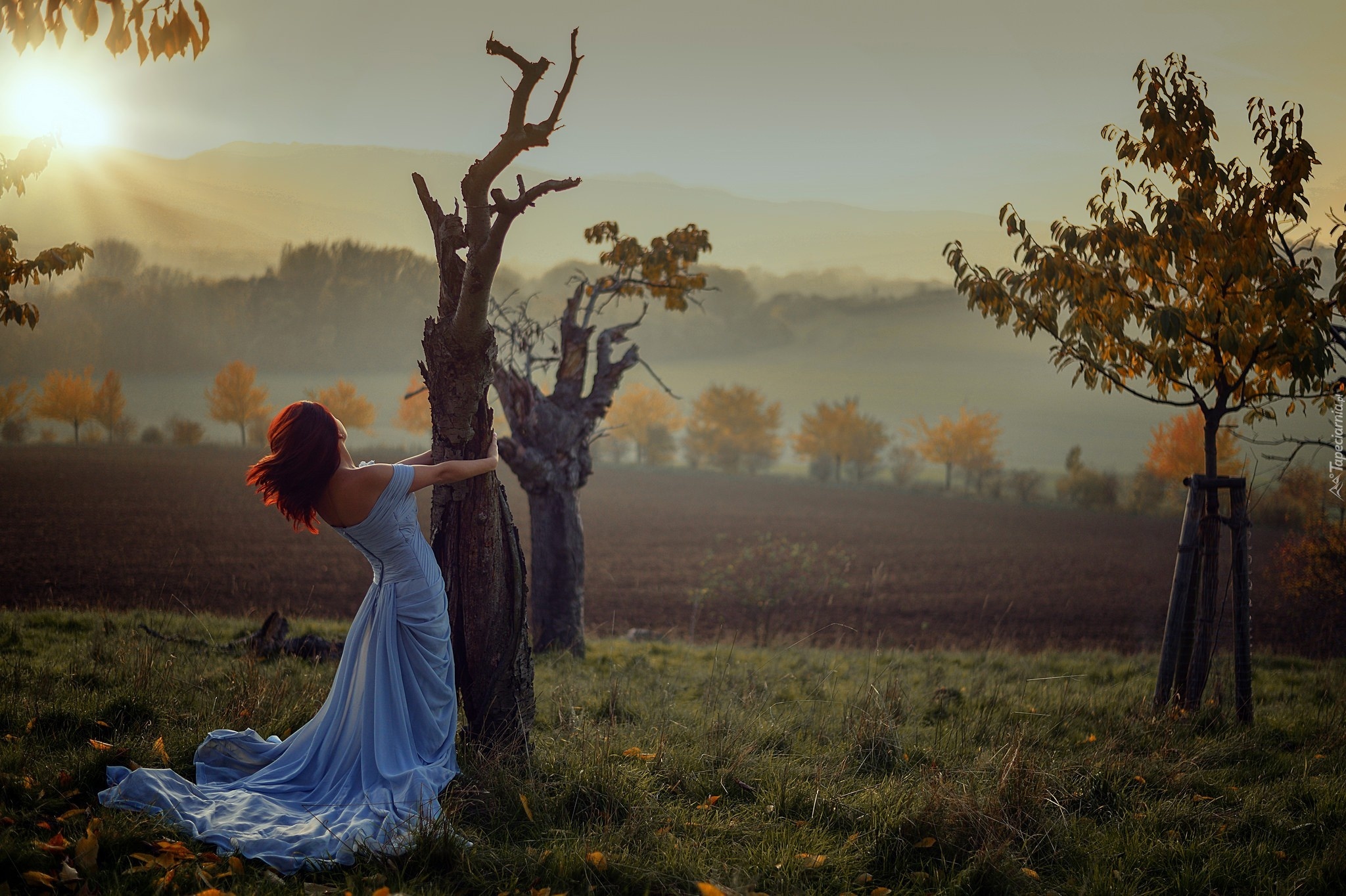 Edytor tapety: Jesień, Kobieta, Drzewa, Pola