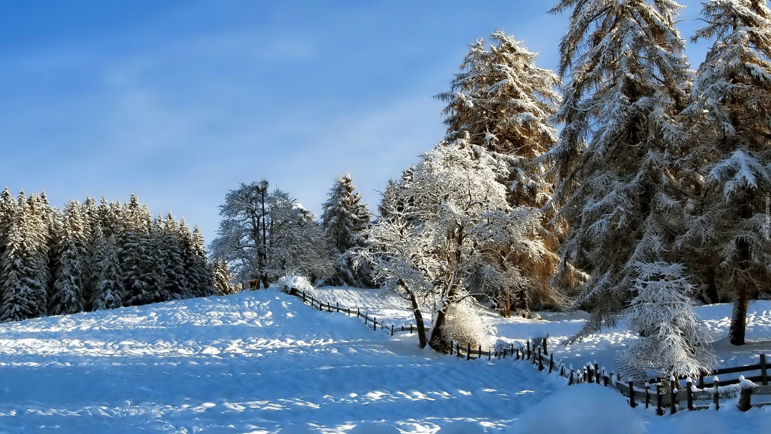 Edytor tapety: Pola, Drzewa, Lasy, Ogrodzenie, Zimowy, Krajobraz