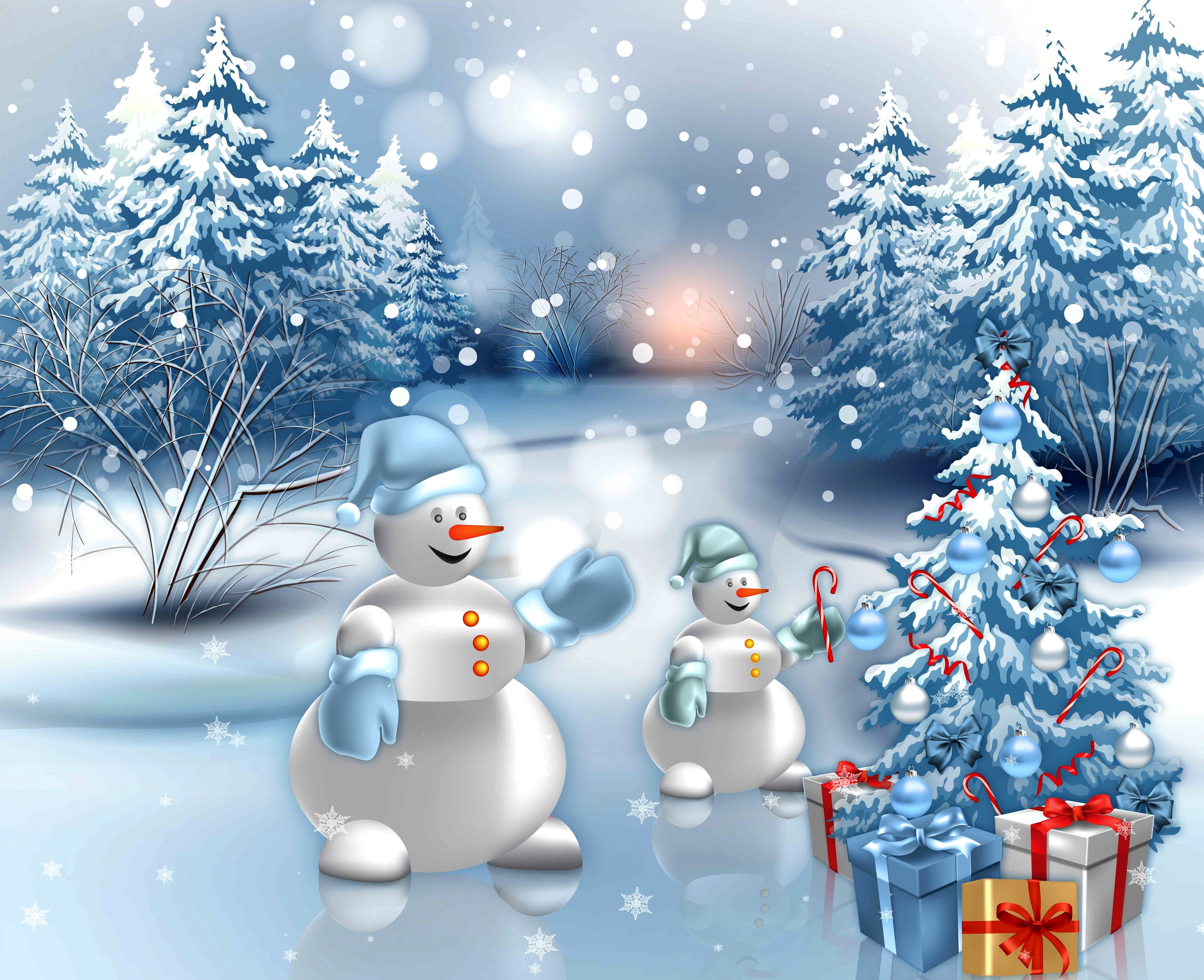 Edytor tapety: Choinka, Bałwany, Prezenty, Śnieg, Świerki