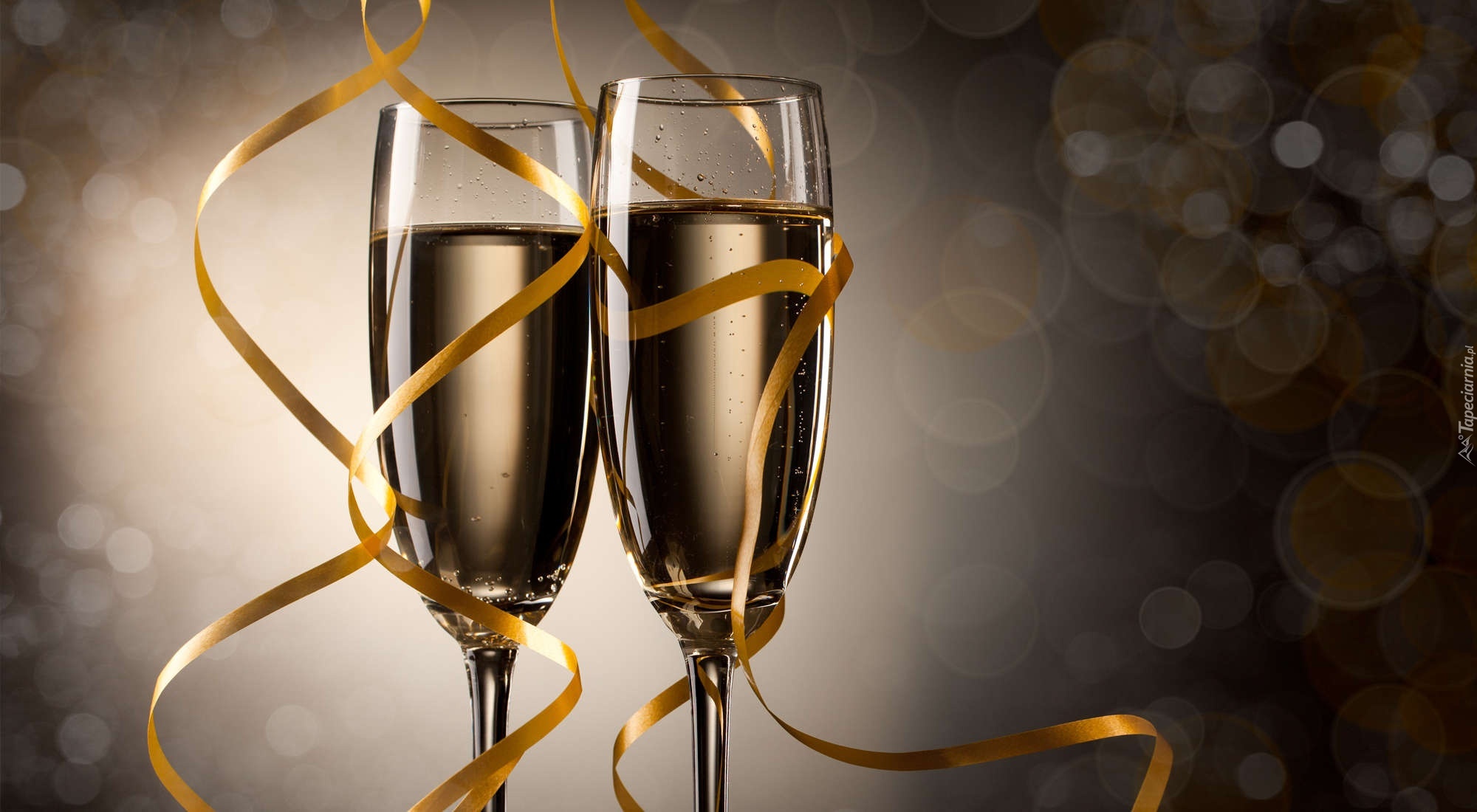 Edytor tapety: Dwa, Kieliszki, Szampana, Serpentyna, Bokeh