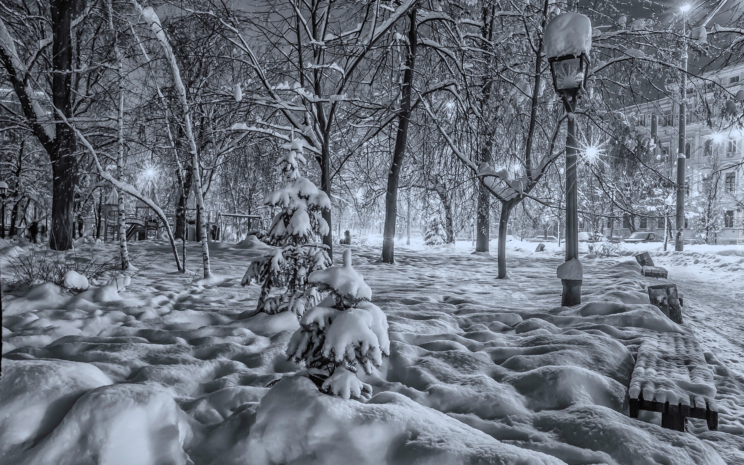 Edytor tapety: Zima, Śnieg, Park, Czarno, Białe