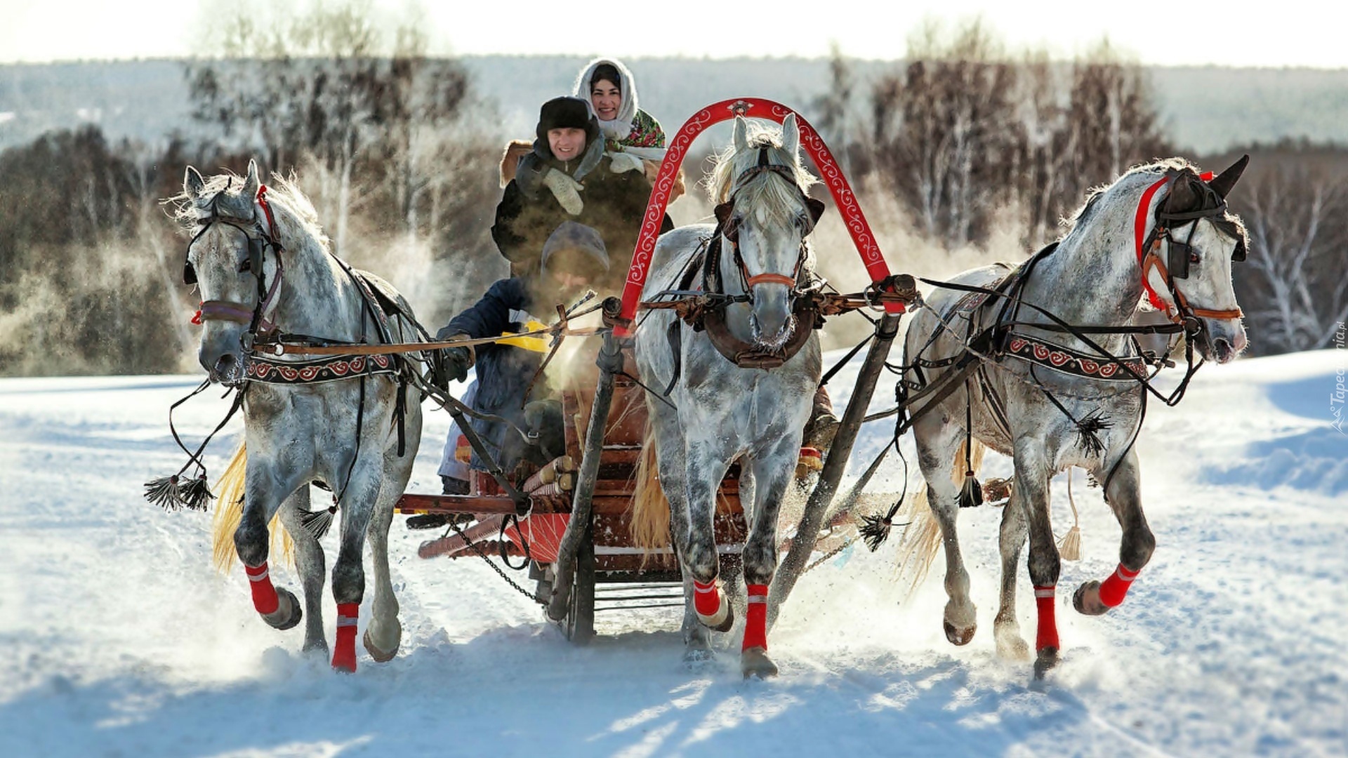 Edytor tapety: Konie, Sanie, Ludzie, Kulig, Góry, Zima
