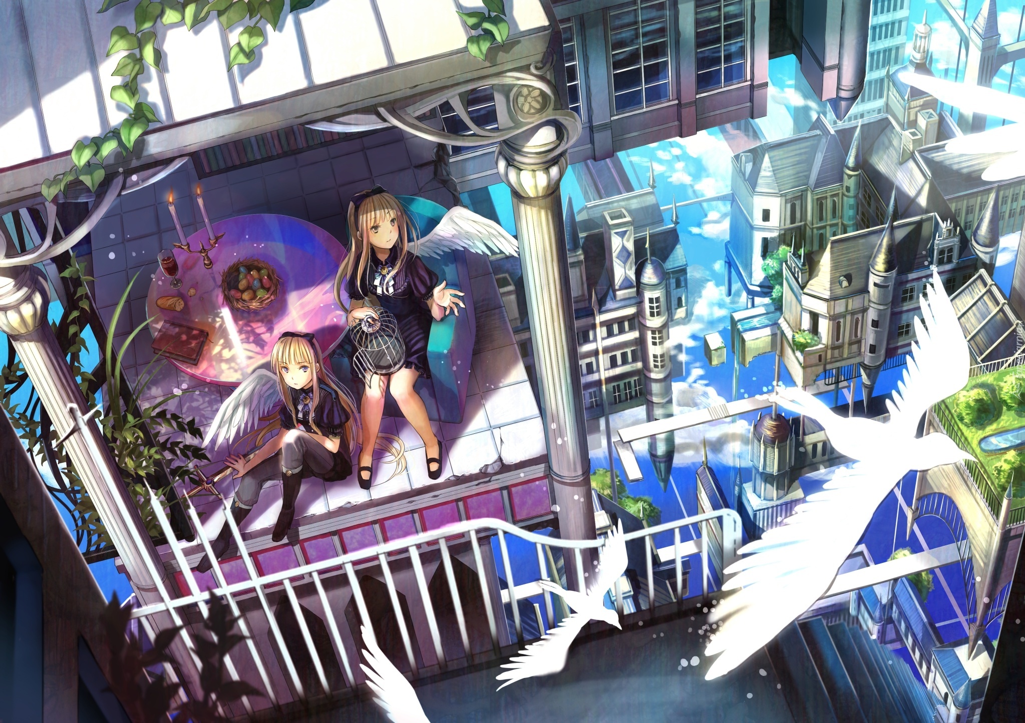 Edytor tapety: Dziewczyny, Ptaki, Skrzydła, Anime