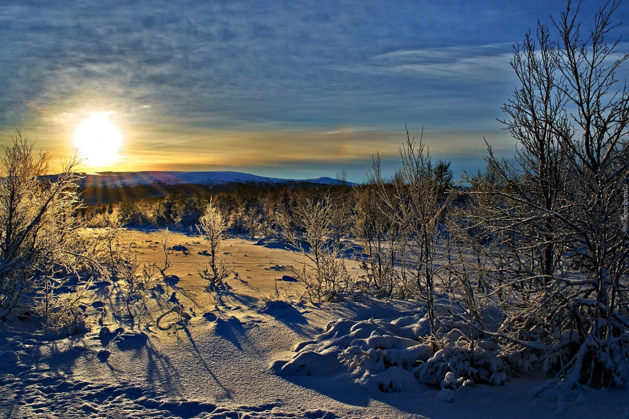 Edytor tapety: Wschód Słońca, Poranek, Wzgórza, Zima
