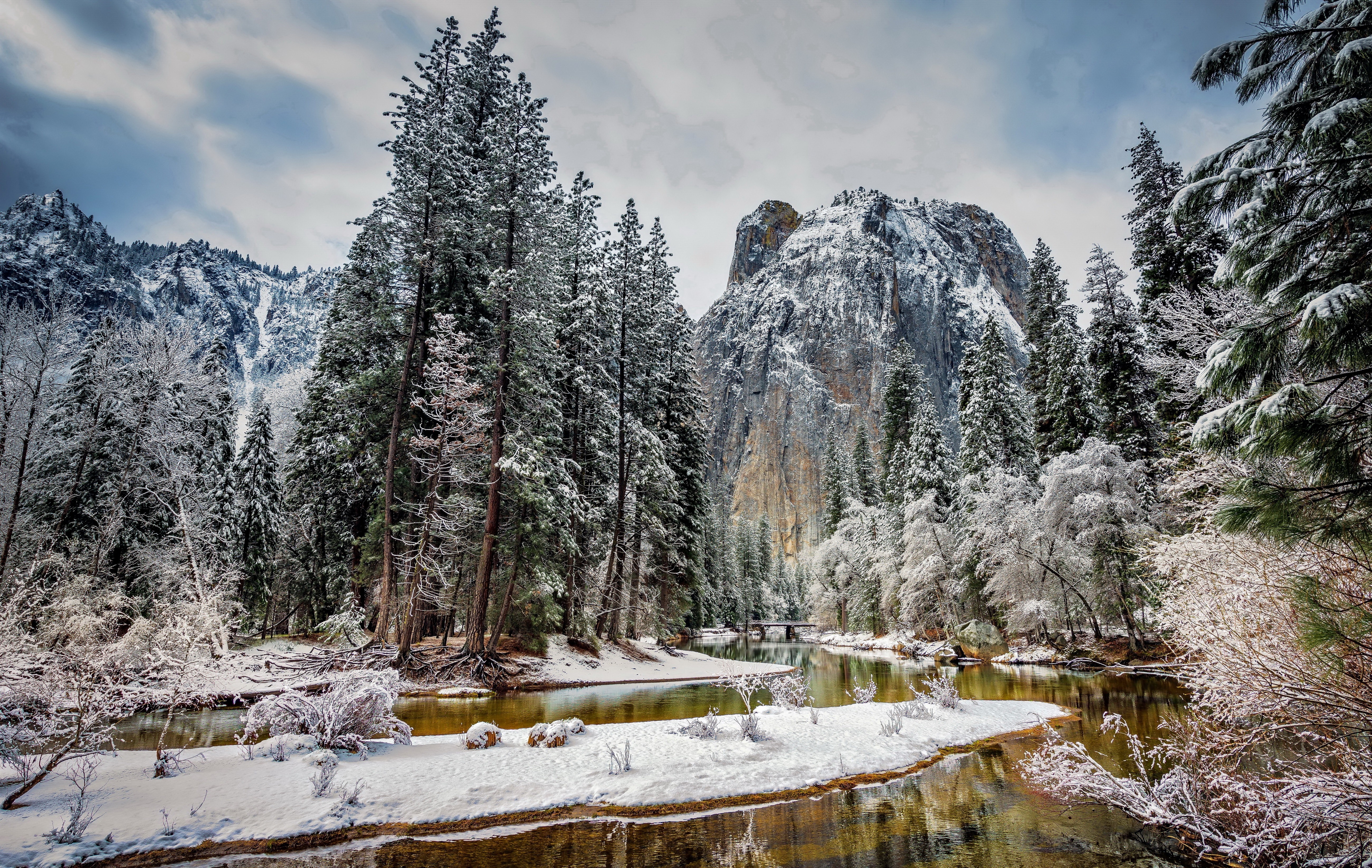 Edytor tapety: Zima, Rzeka, Skała, Oszronione, Drzewa