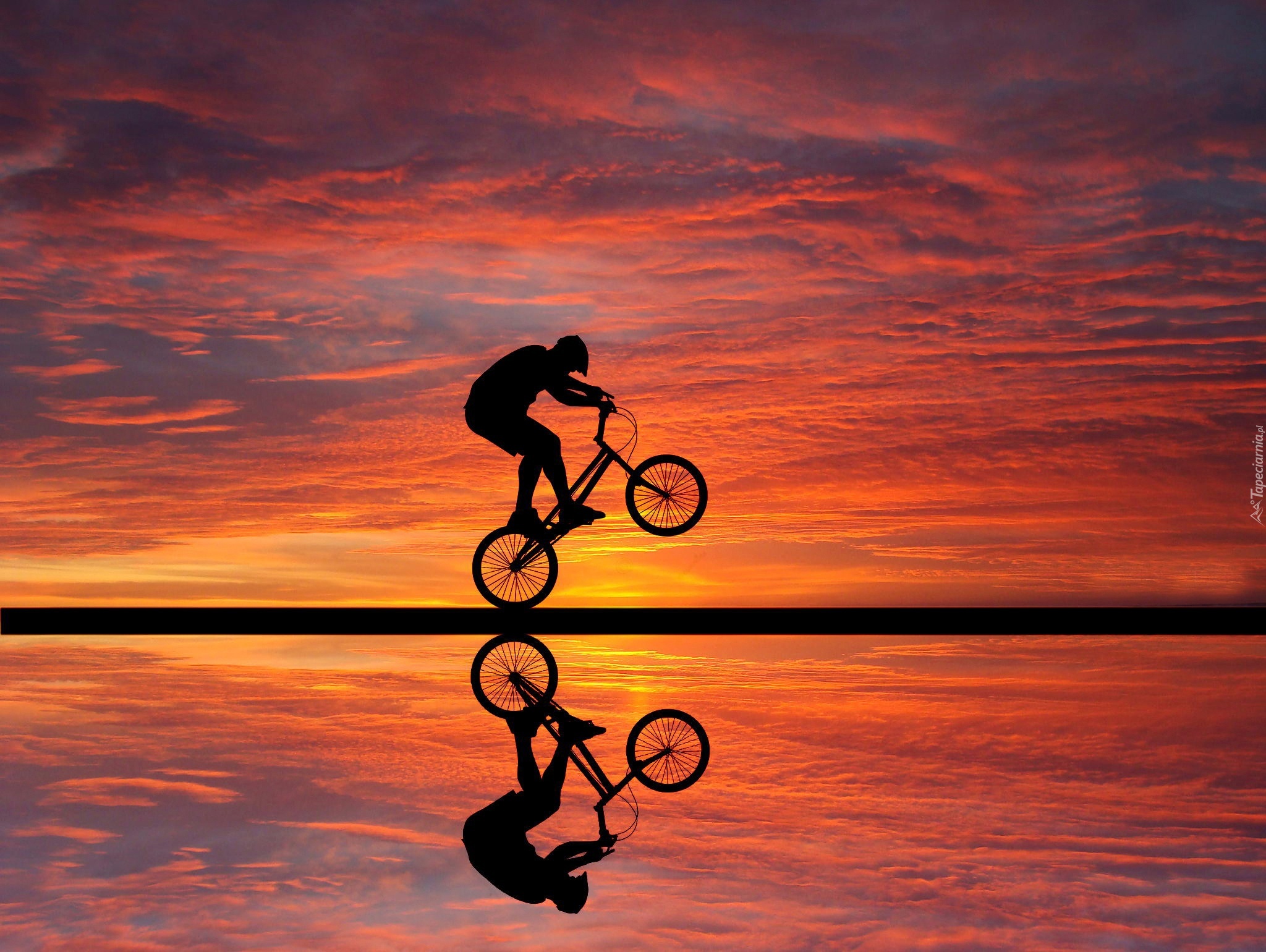 Edytor tapety: Rower, Zachód słońca, Odbicie