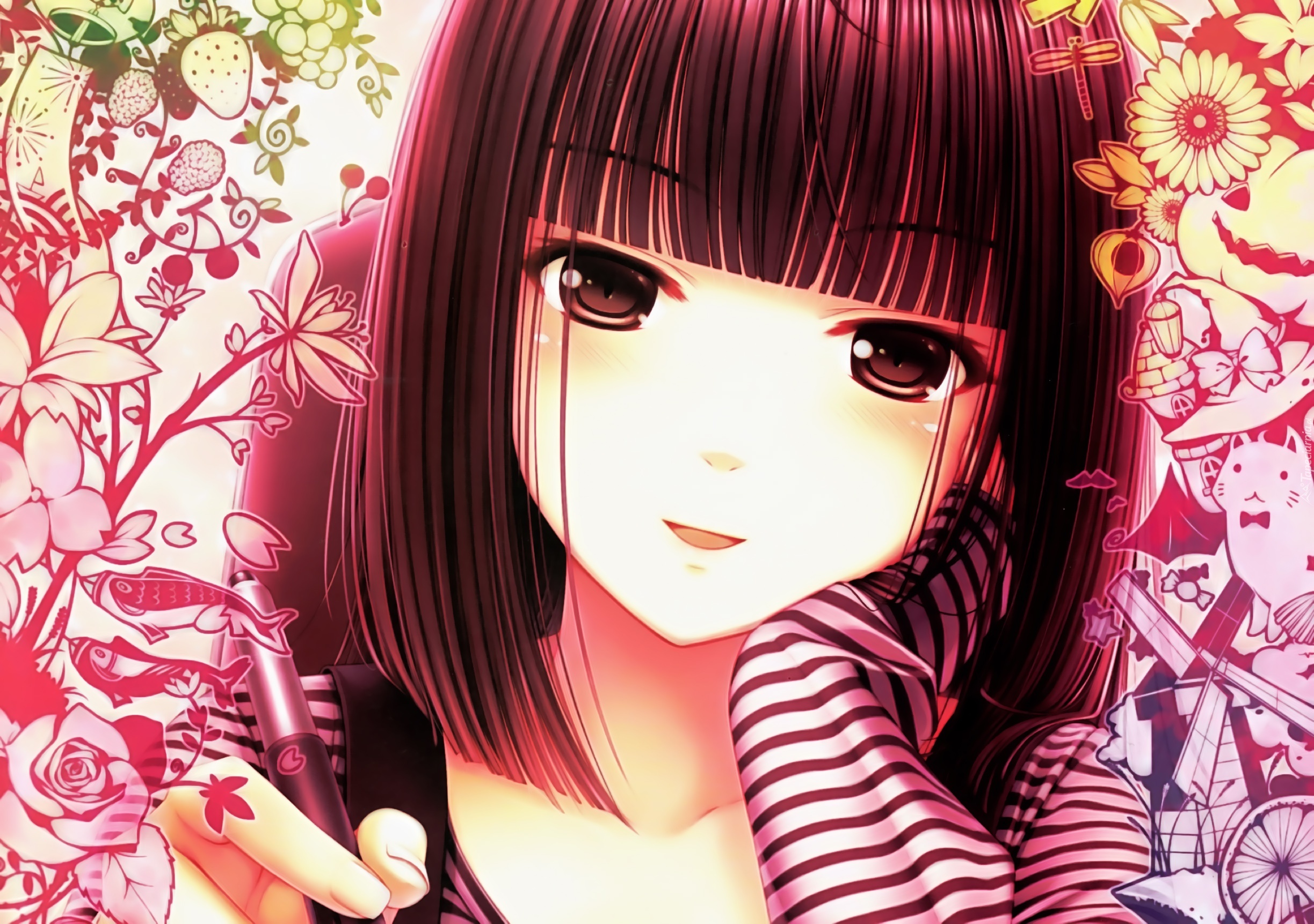 Edytor tapety: Dziewczyna, Długopis, Anime