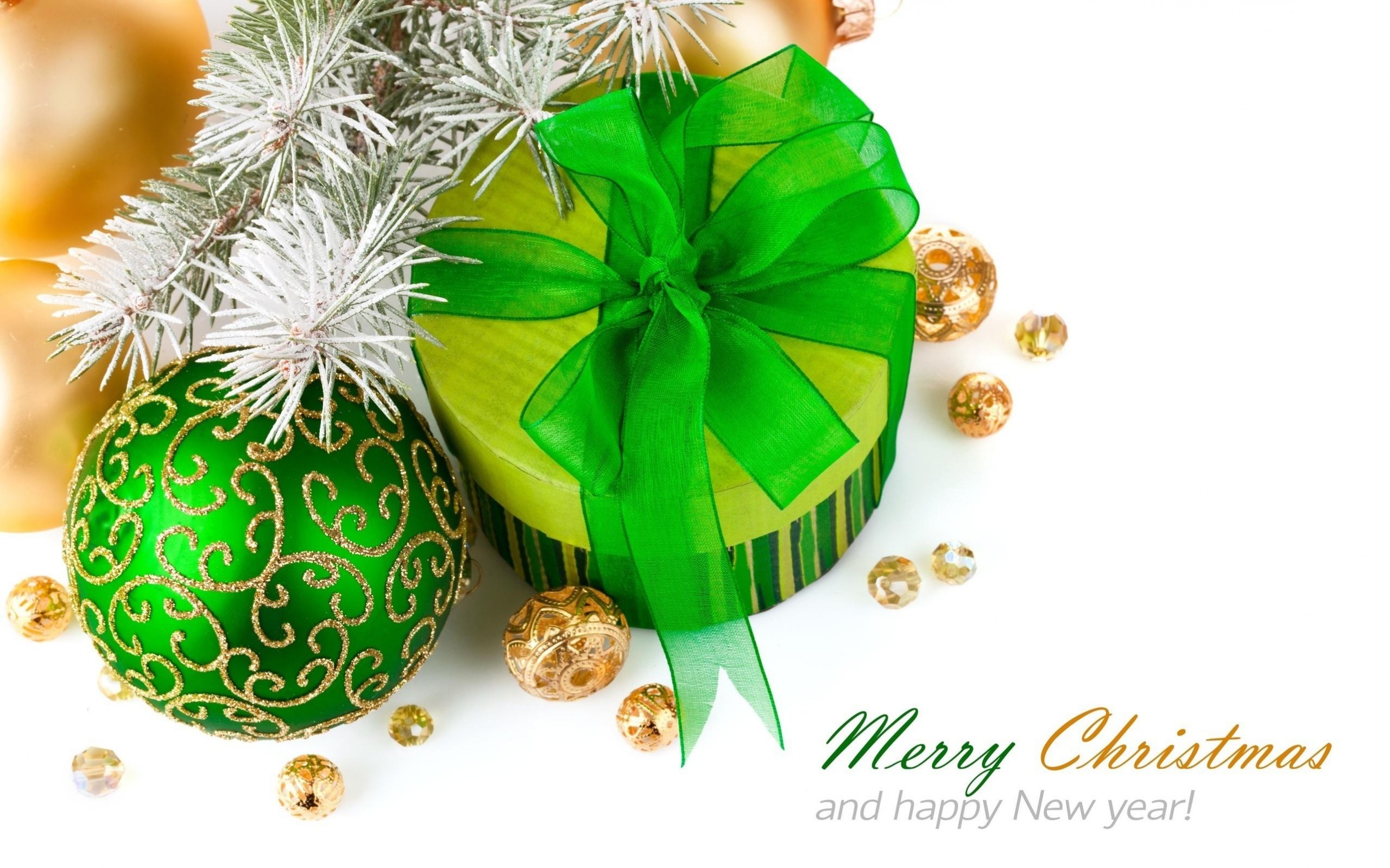Edytor tapety: Zielono, Złota, Dekoracja, Bombki, Prezent, Gałązka