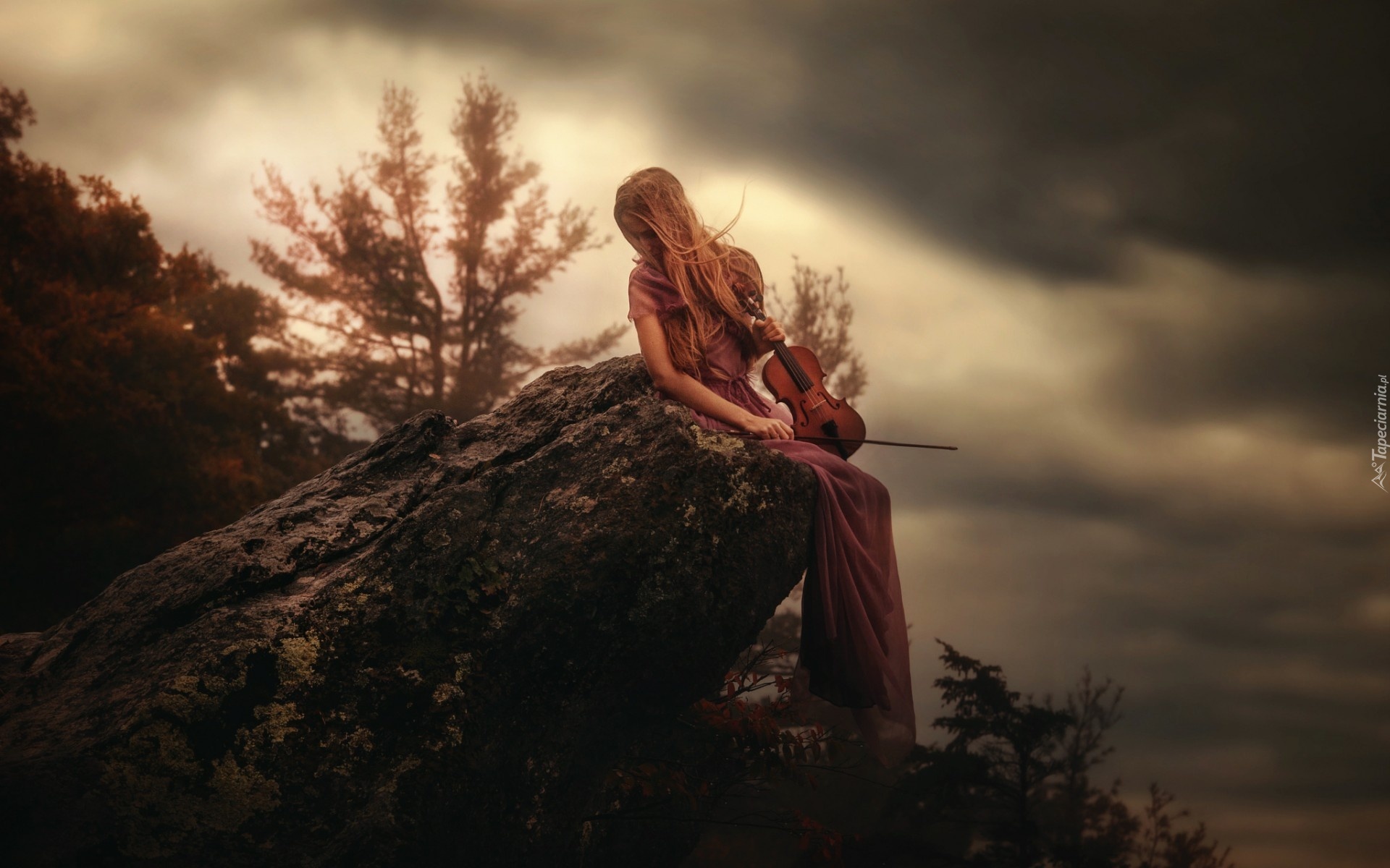 Edytor tapety: Chmury, Skała, Dziewczyna, Skrzypce