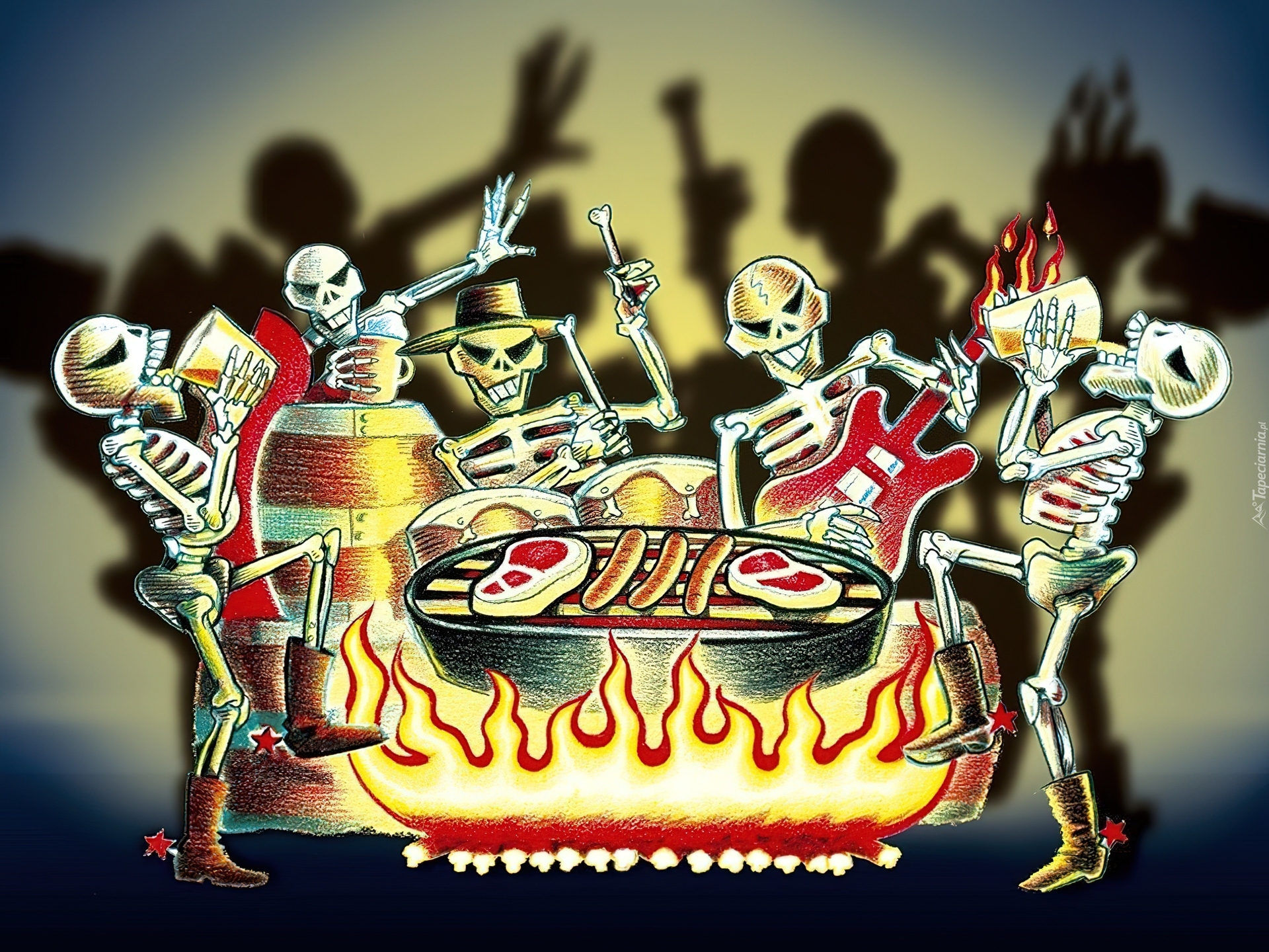 Edytor tapety: Die Toten Hosen,ogień, trupie czaszki , szkielety