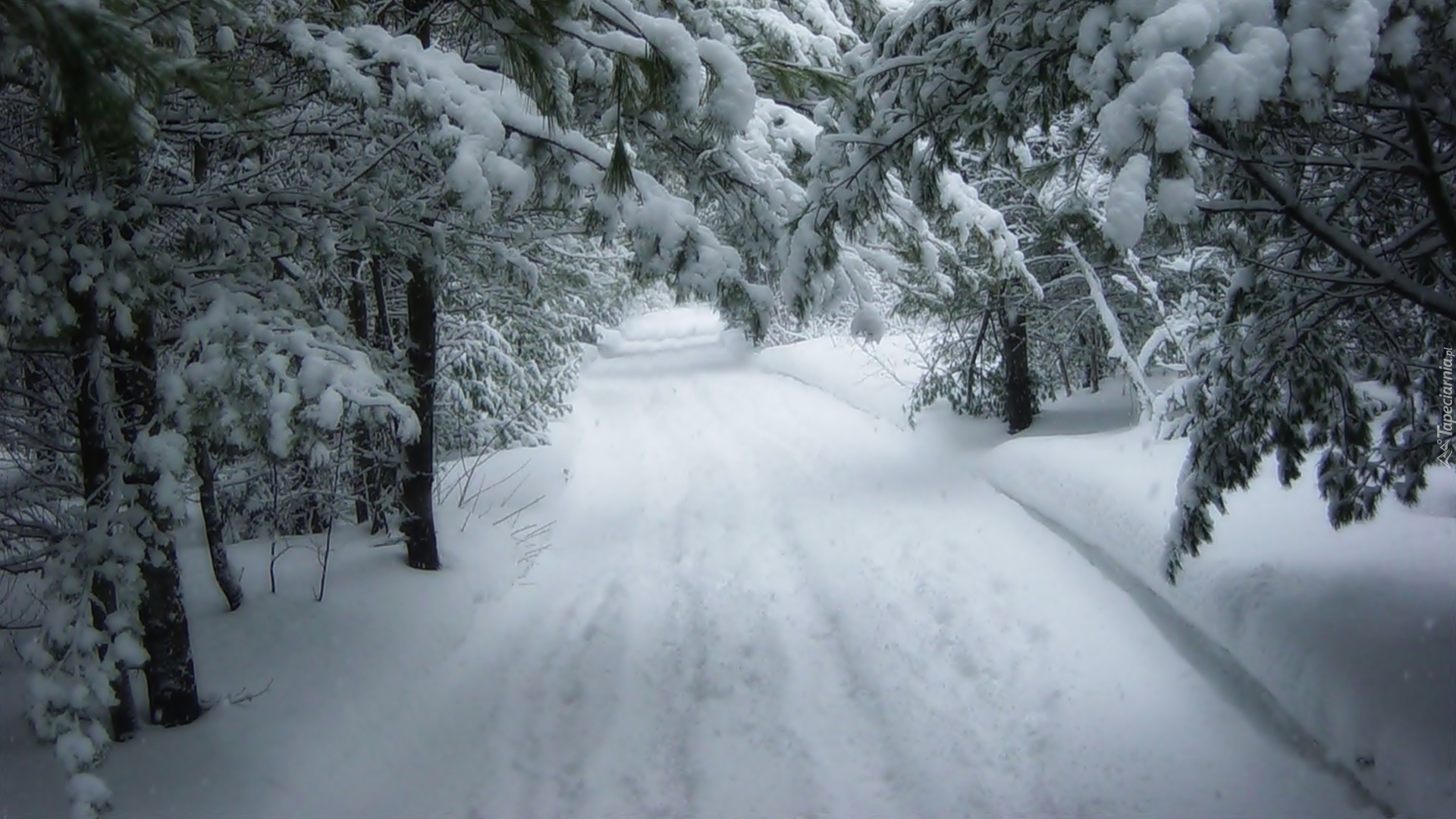 Edytor tapety: Droga, Las, Ośnieżone, Drzewa, Zima