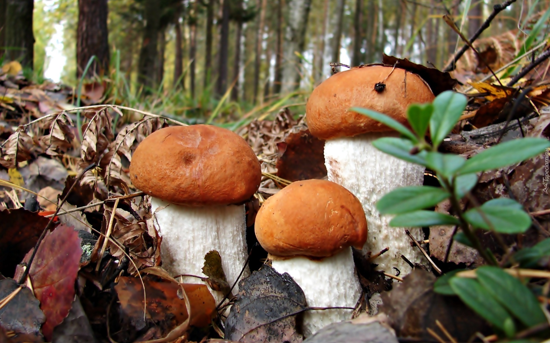 Edytor tapety: Trzy, Grzyby, Las, Ściółka Leśna