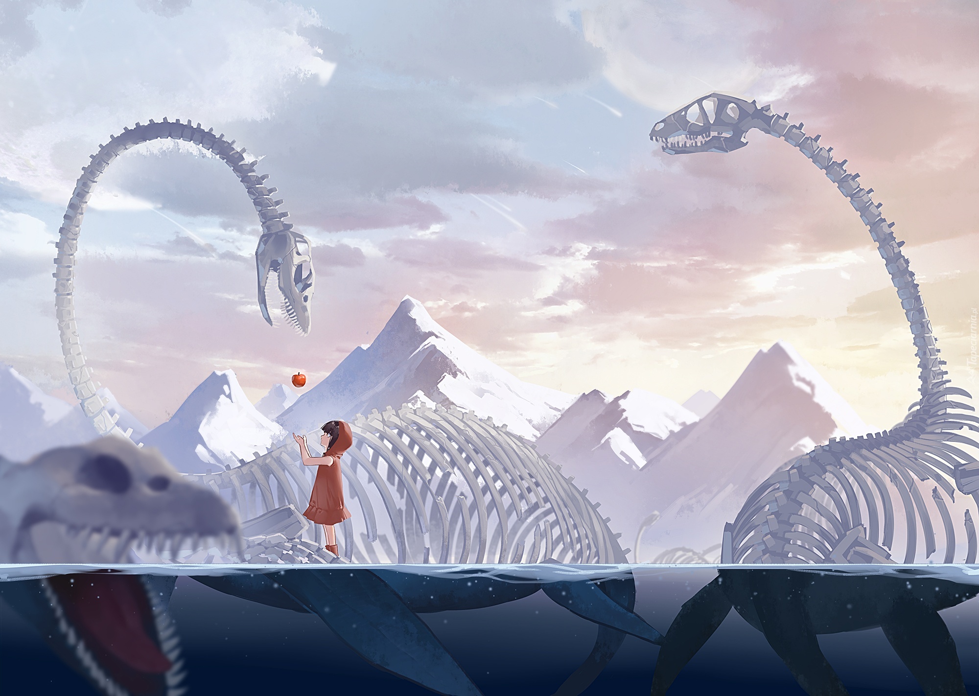 Edytor tapety: Dziewczynka, Szkielety, Jabłko, Anime
