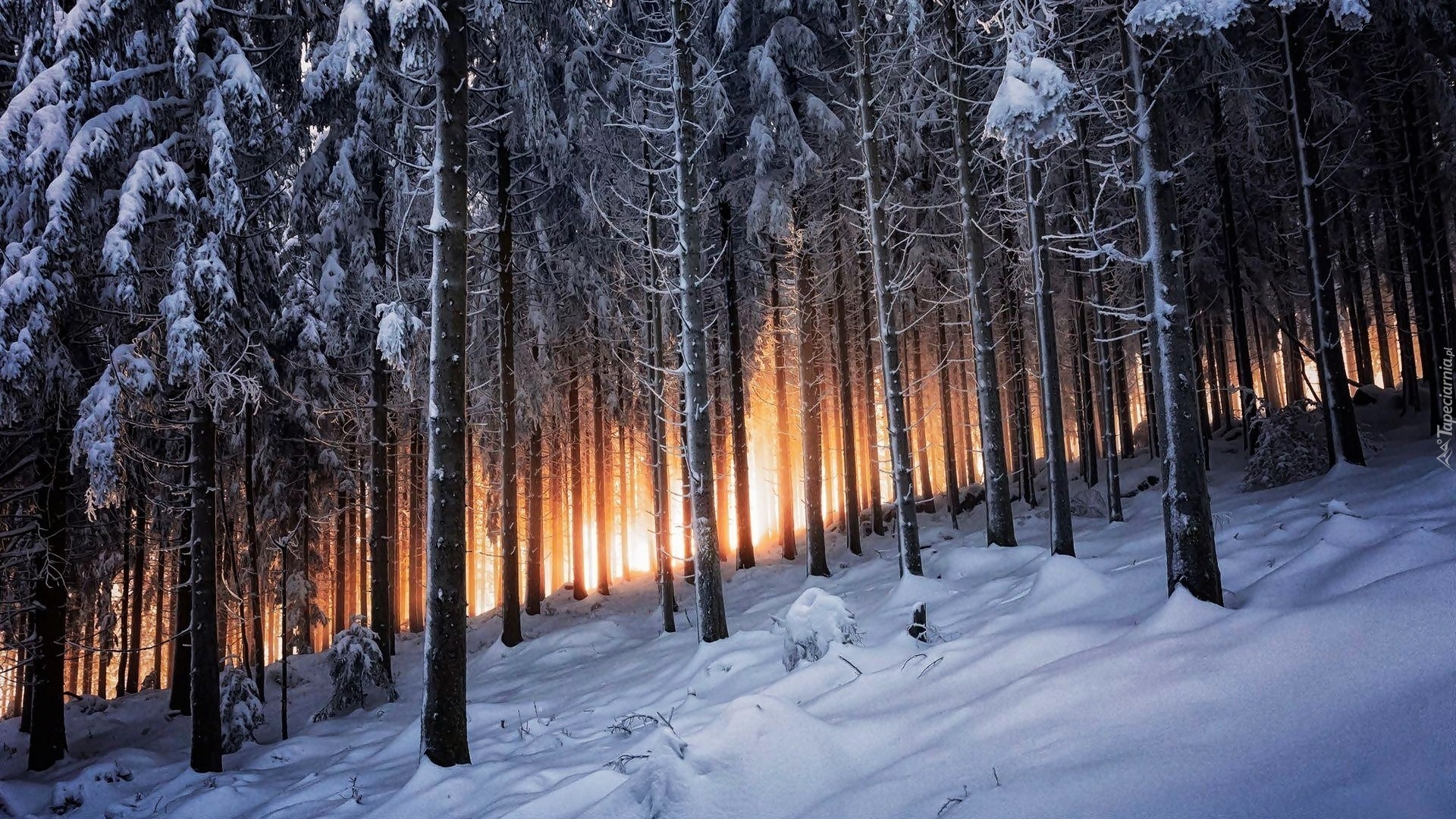 Edytor tapety: Zima, Las, Przebijające, Światło, Drzewa