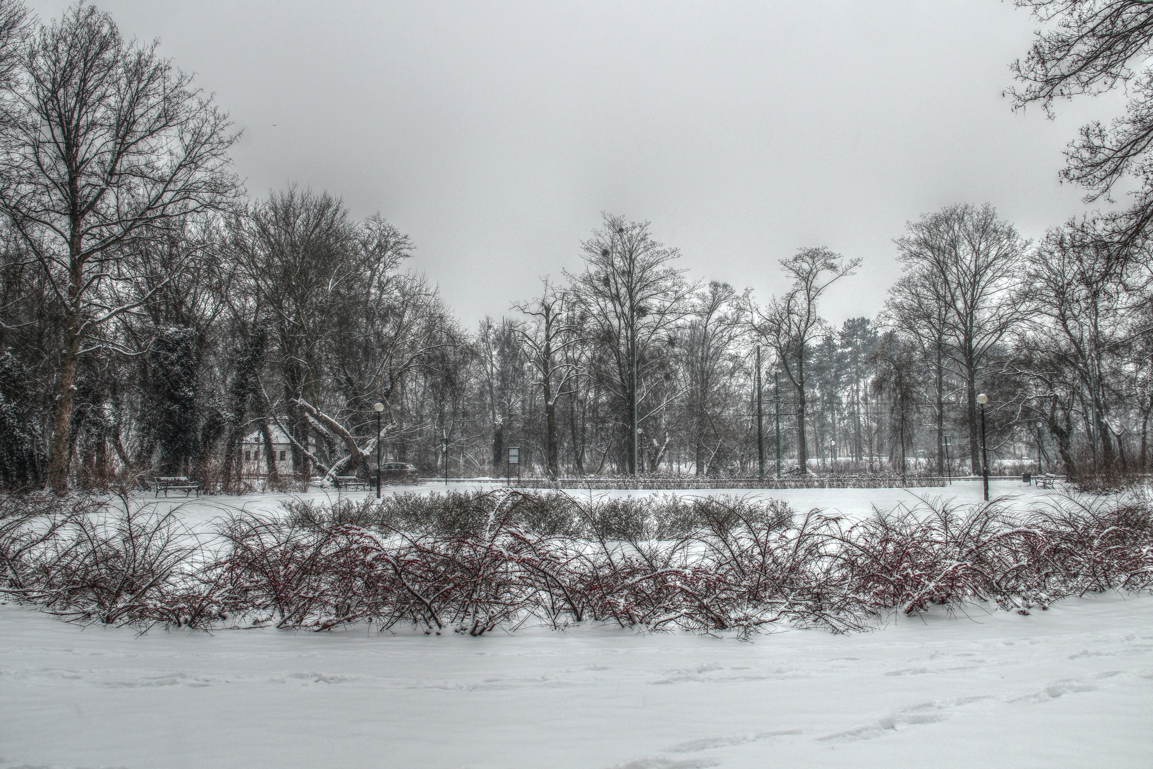Edytor tapety: Zima, Drzewa, Krzewy, Park, Plac Spiski, Poznań, HDR