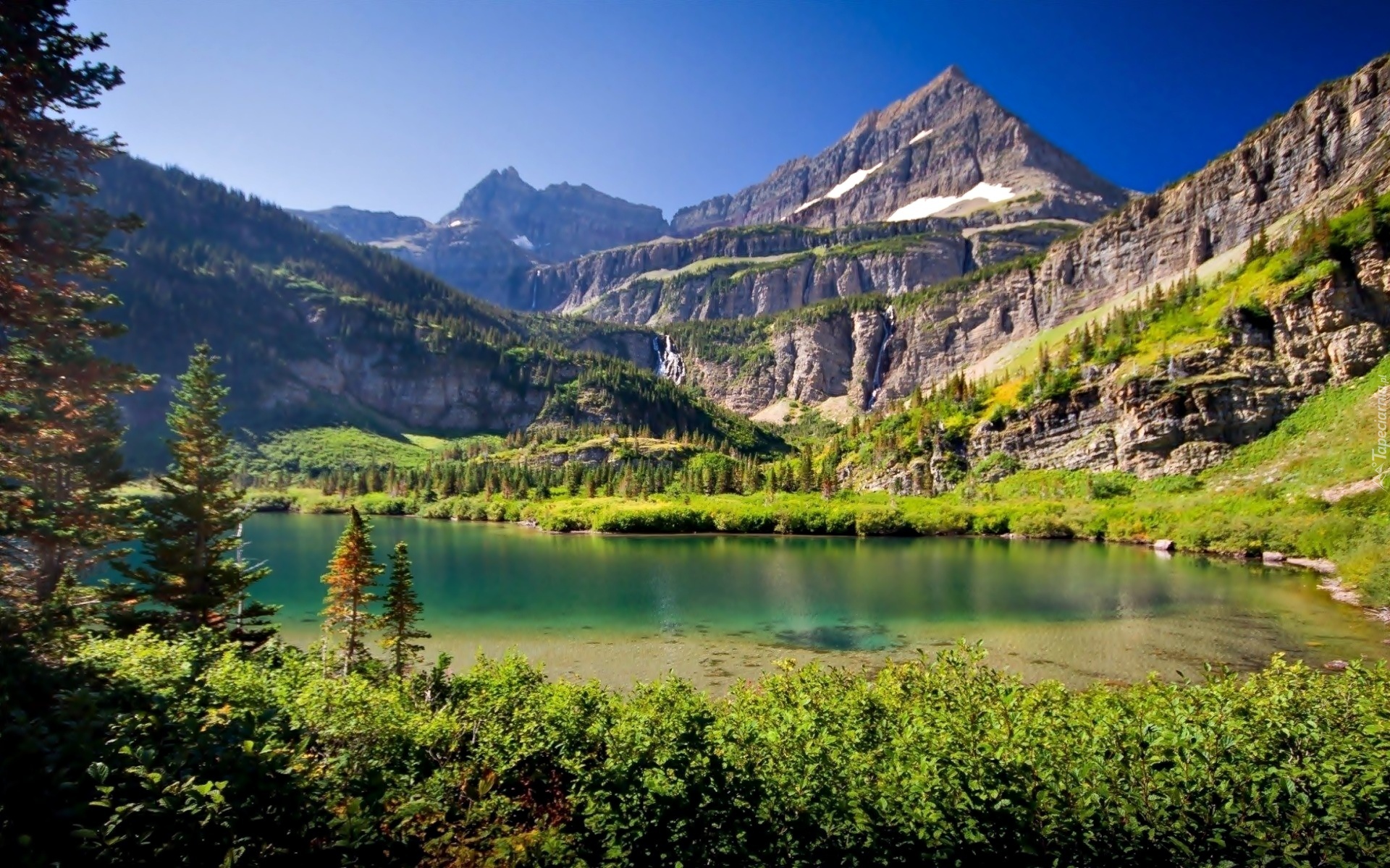 Edytor tapety: Góry, Skały, Jezioro, Drzewa, Zieleń