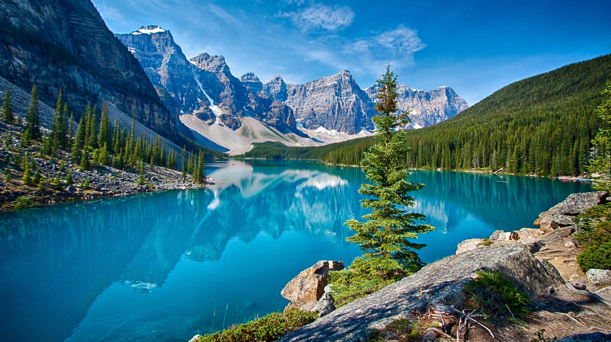 Edytor tapety: Kanada, Prowincja Alberta, Park Narodowy Banff, Góry, Jezioro Moraine, Świerki