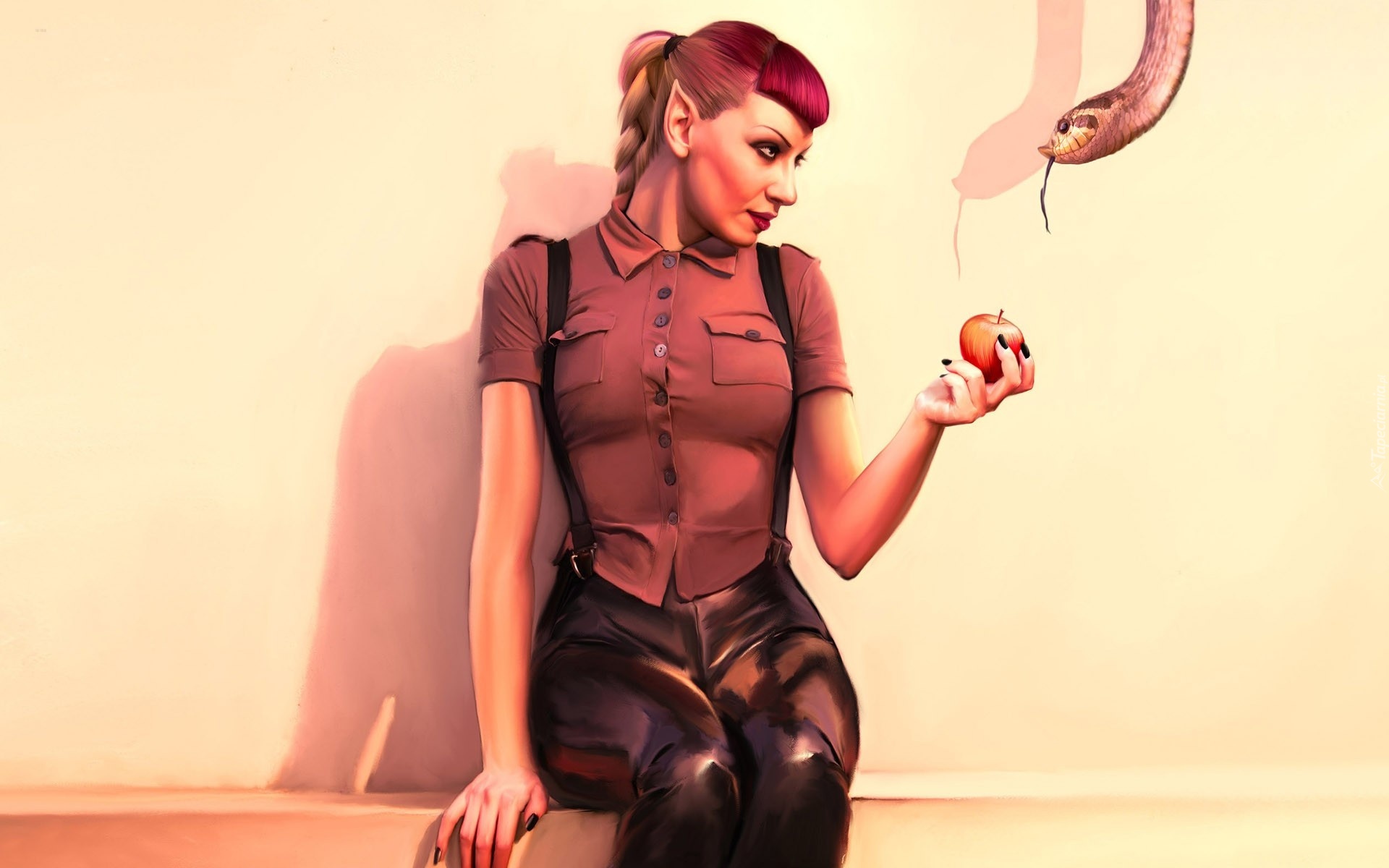 Edytor tapety: Fantasy, Kobieta, Wąż, Jabłko