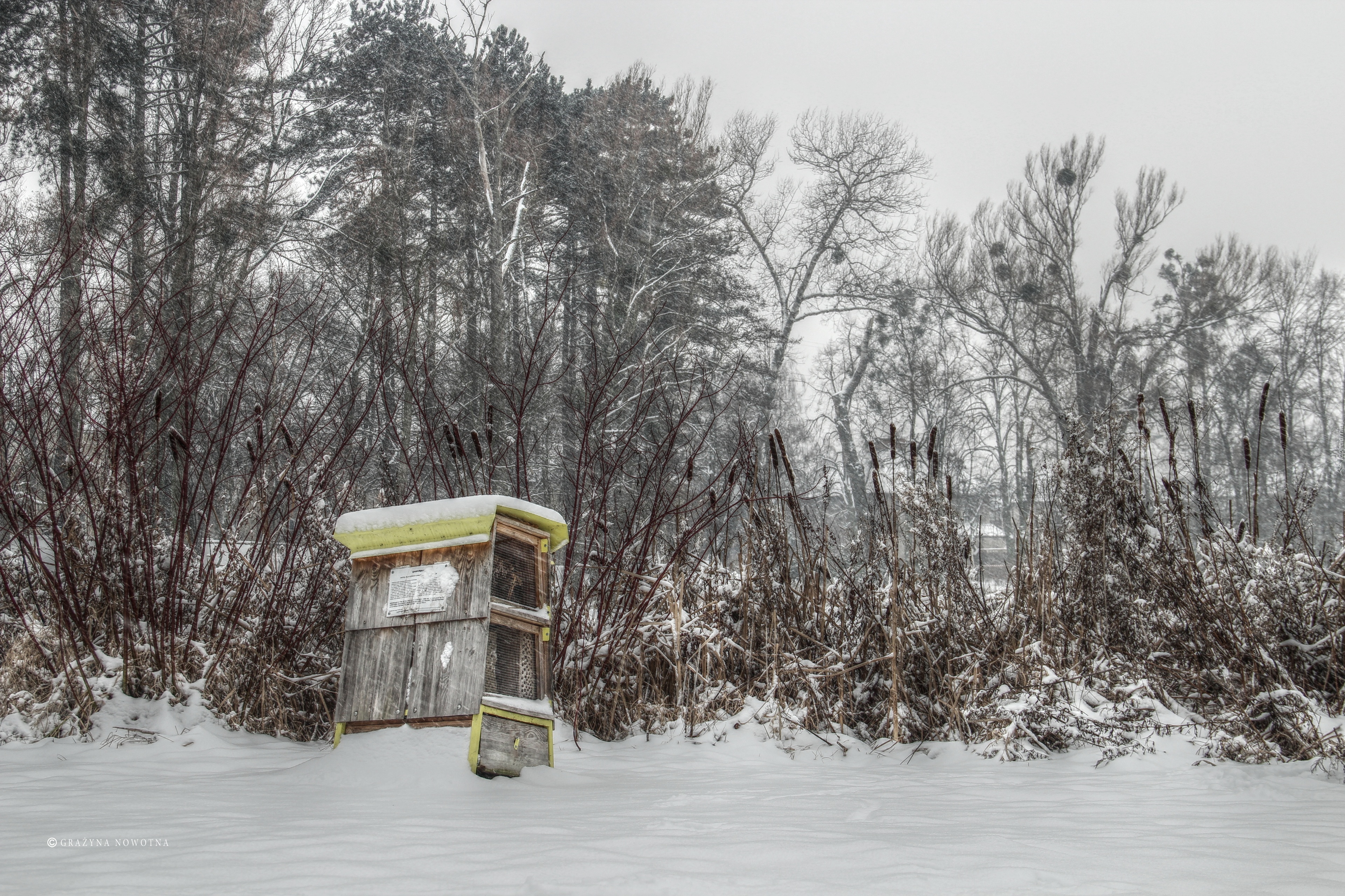 Edytor tapety: Zima, Park Sołacki, Poznań, Domek, Dla Owadów Zapylających