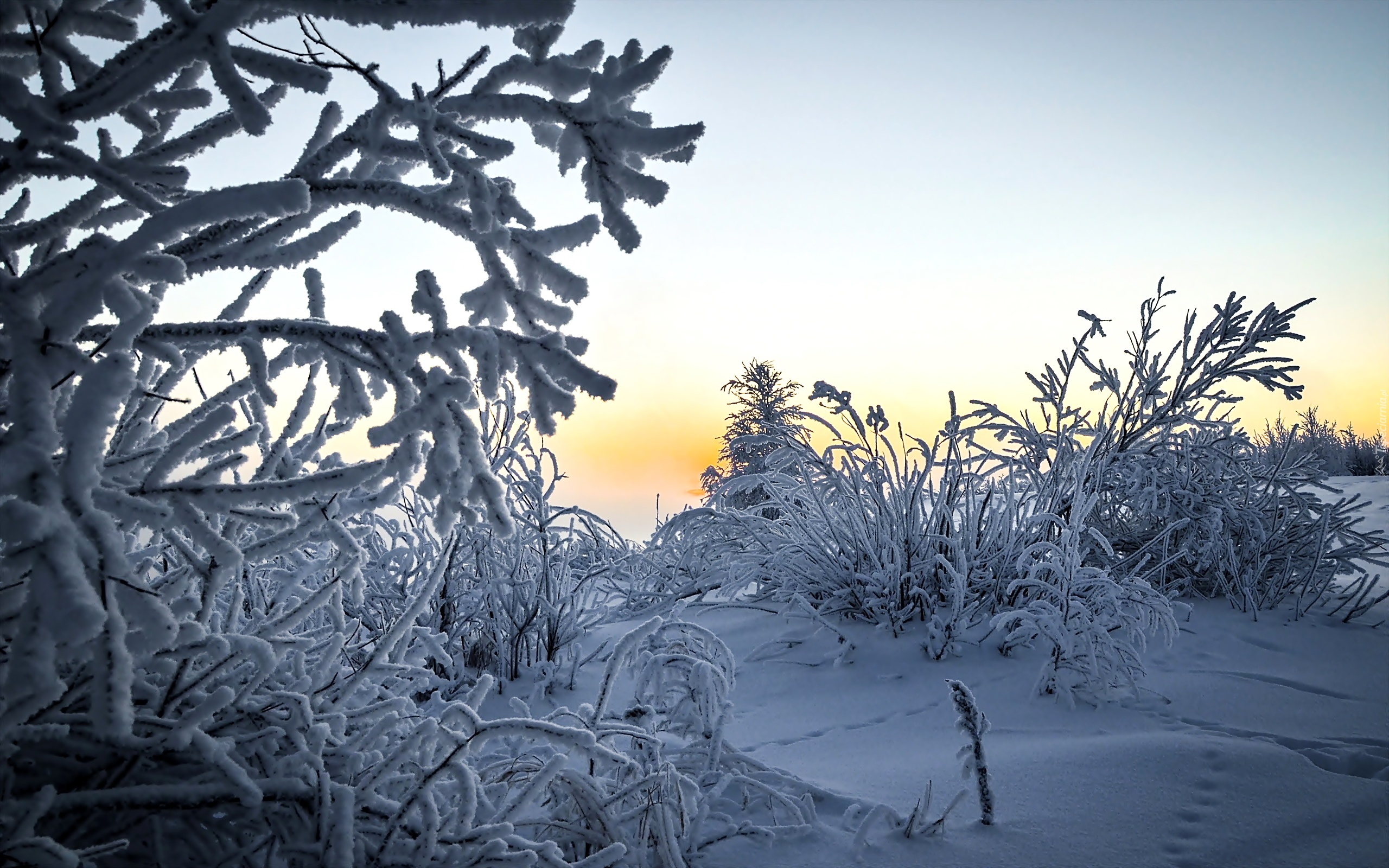 Edytor tapety: Zima, Oszronione, Gałązki, Blask, Wschodzącego, Słońca