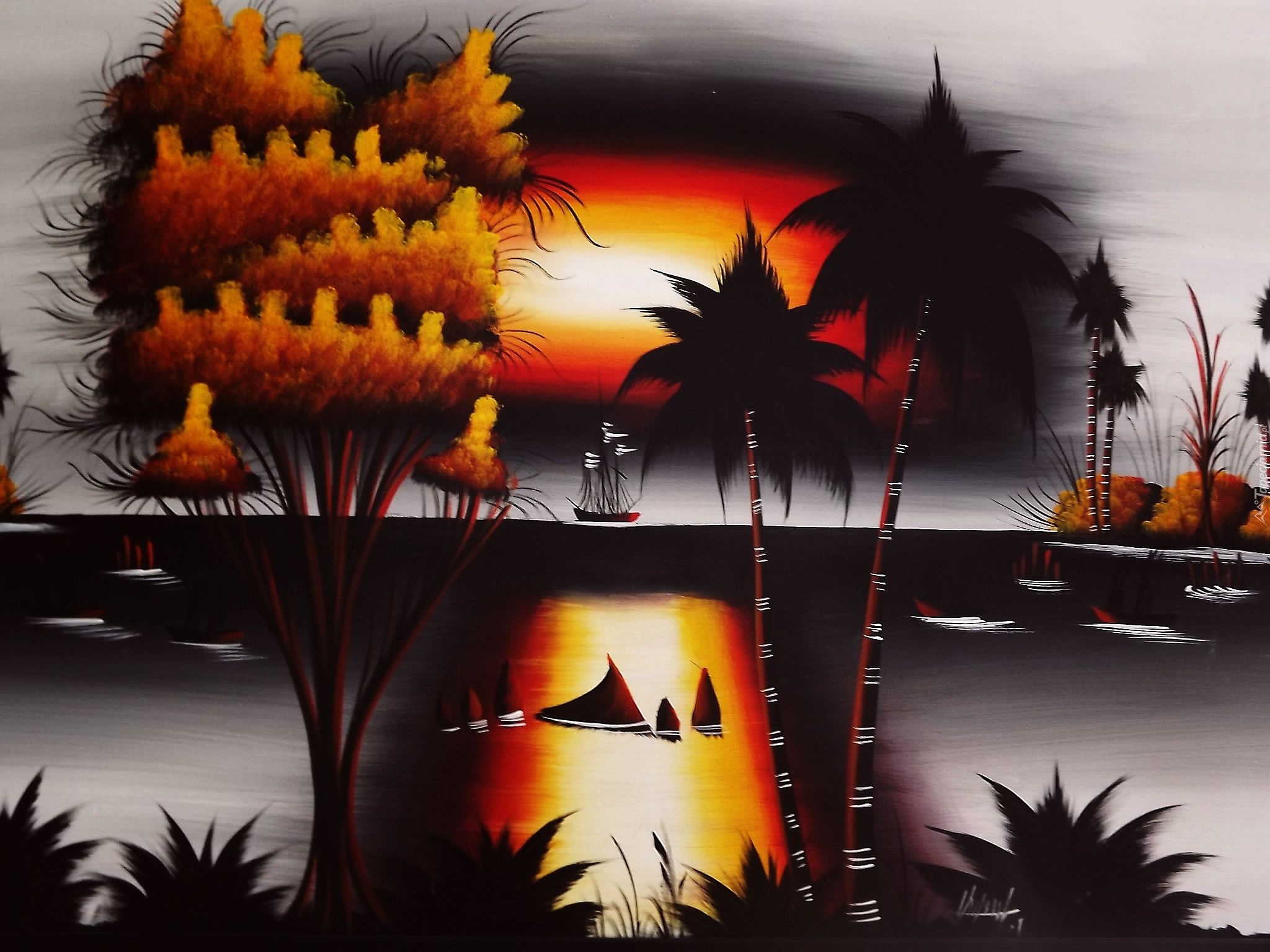 Edytor tapety: Palmy, Krzewy, Słońce, Odbicie, Grafika