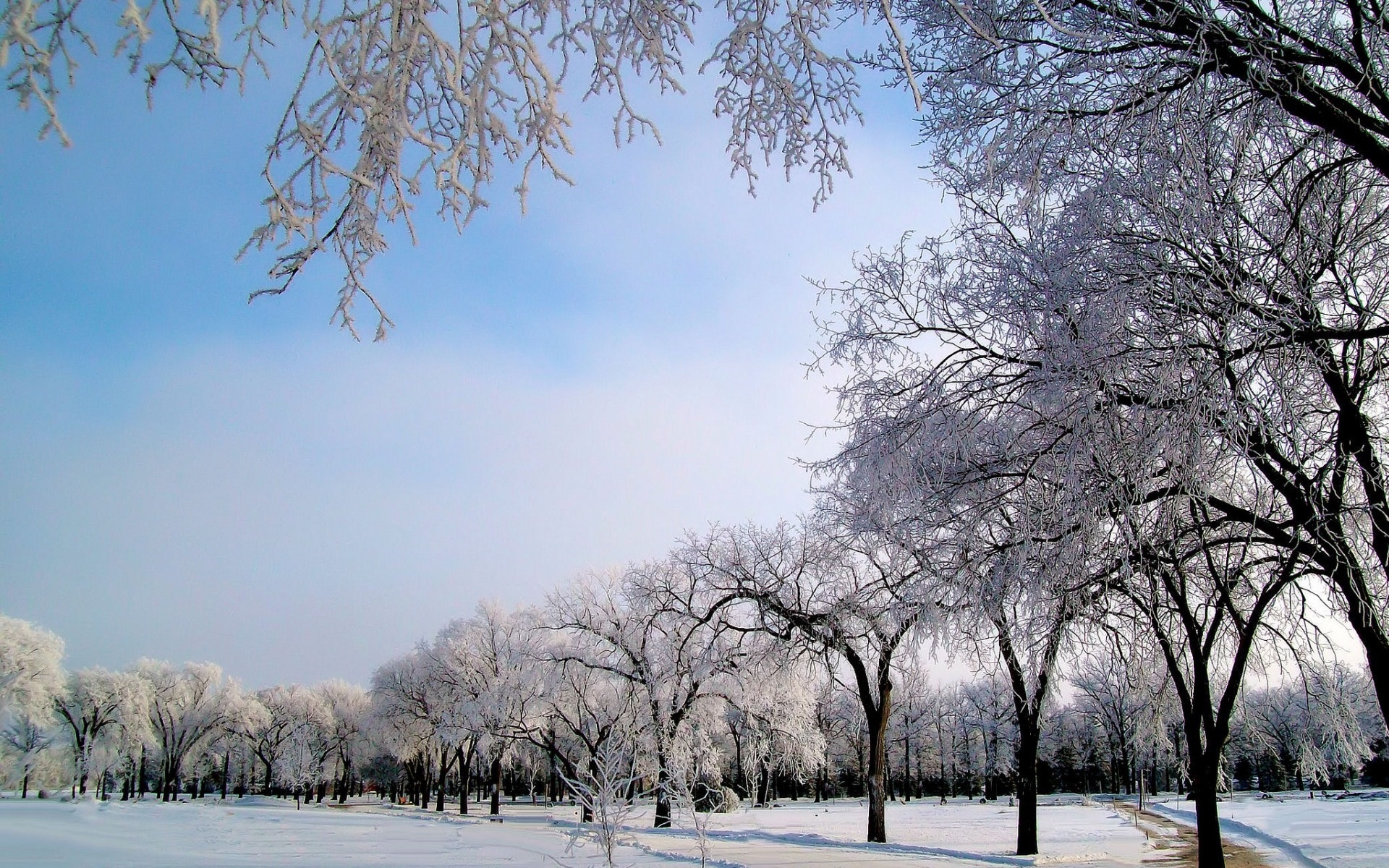 Edytor tapety: Zima, Niebo, Park, Droga, Śnieg