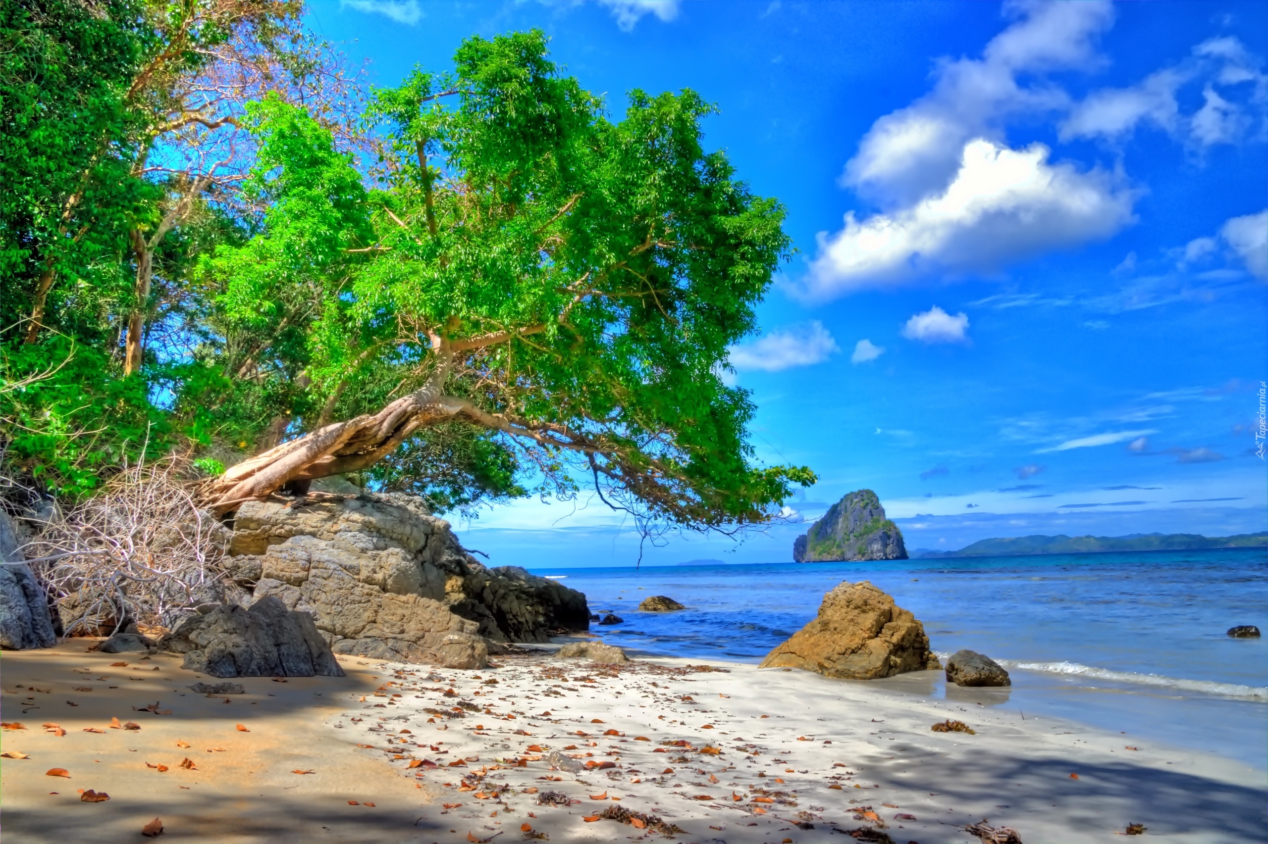 Edytor tapety: Morze, Plaża, Skały, Drzewo