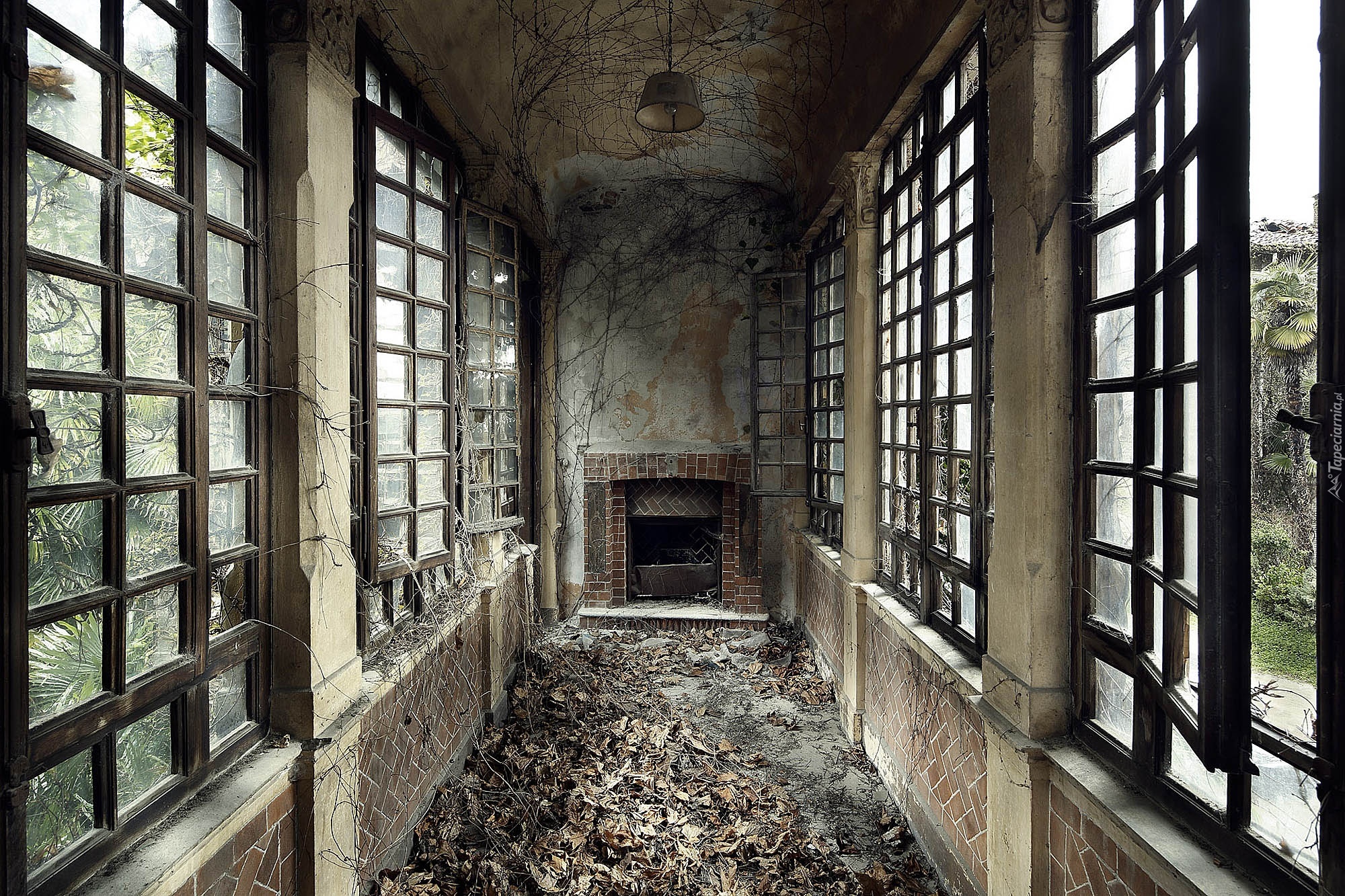Edytor tapety: Zaniedbane, Wnętrze, Okna, Kominek