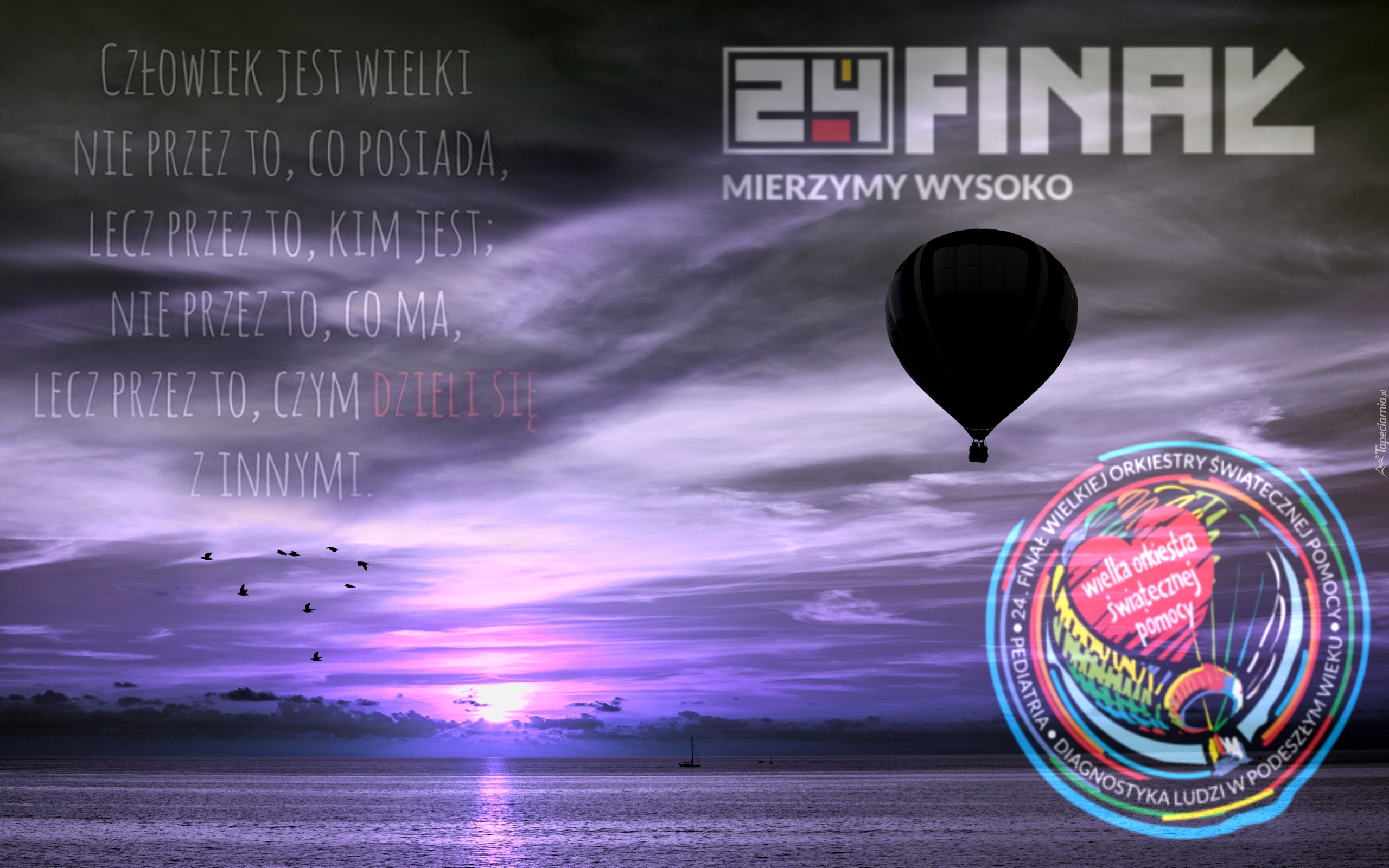 Edytor tapety: WOŚP, Balon, Zachód Słońca