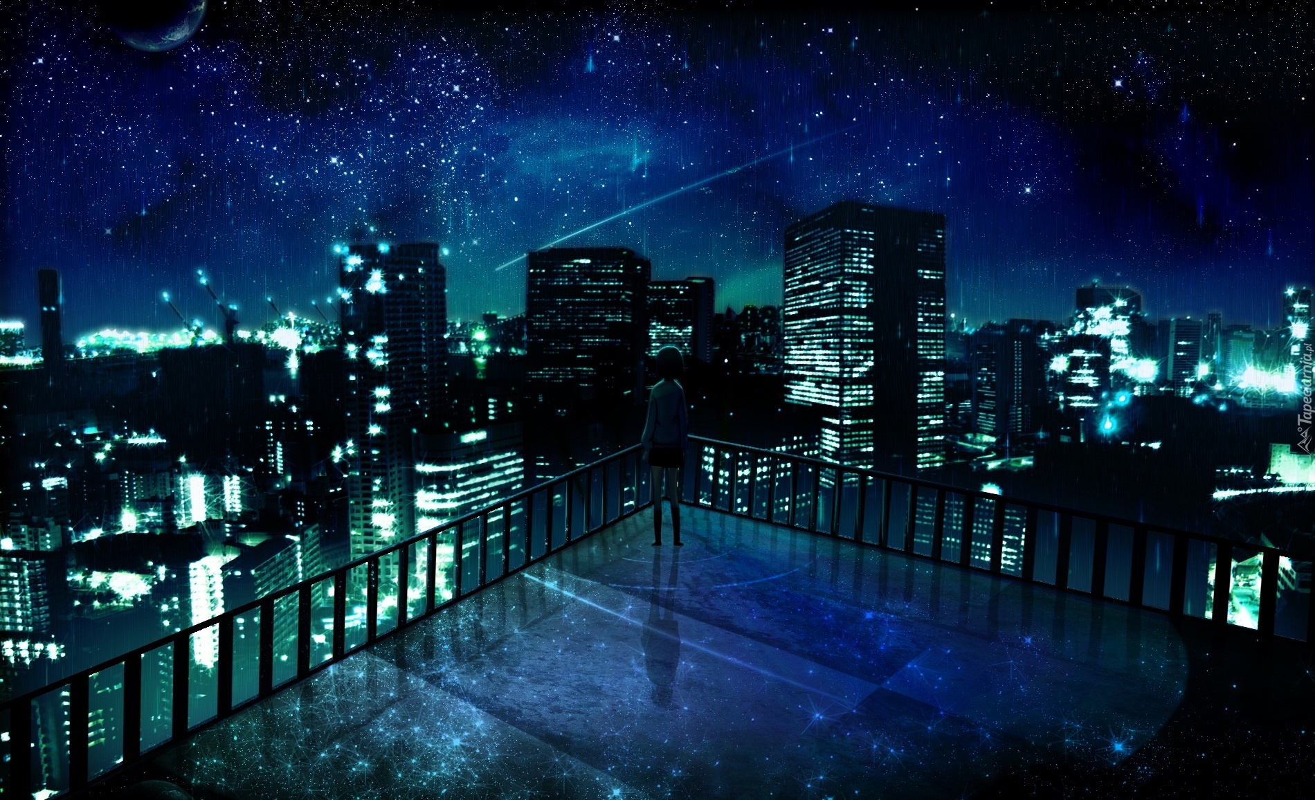 Edytor tapety: Dziewczyna, Dach, Noc, Gwiazdy