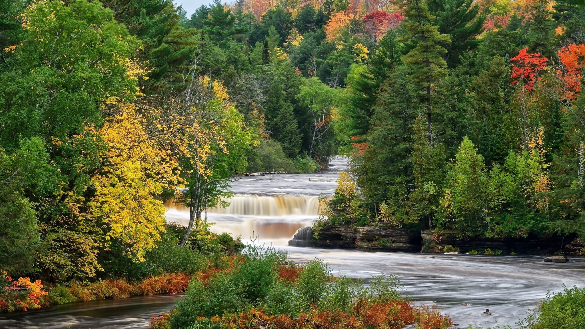 Edytor tapety: Wodospad, Rzeka, Las, Jesień