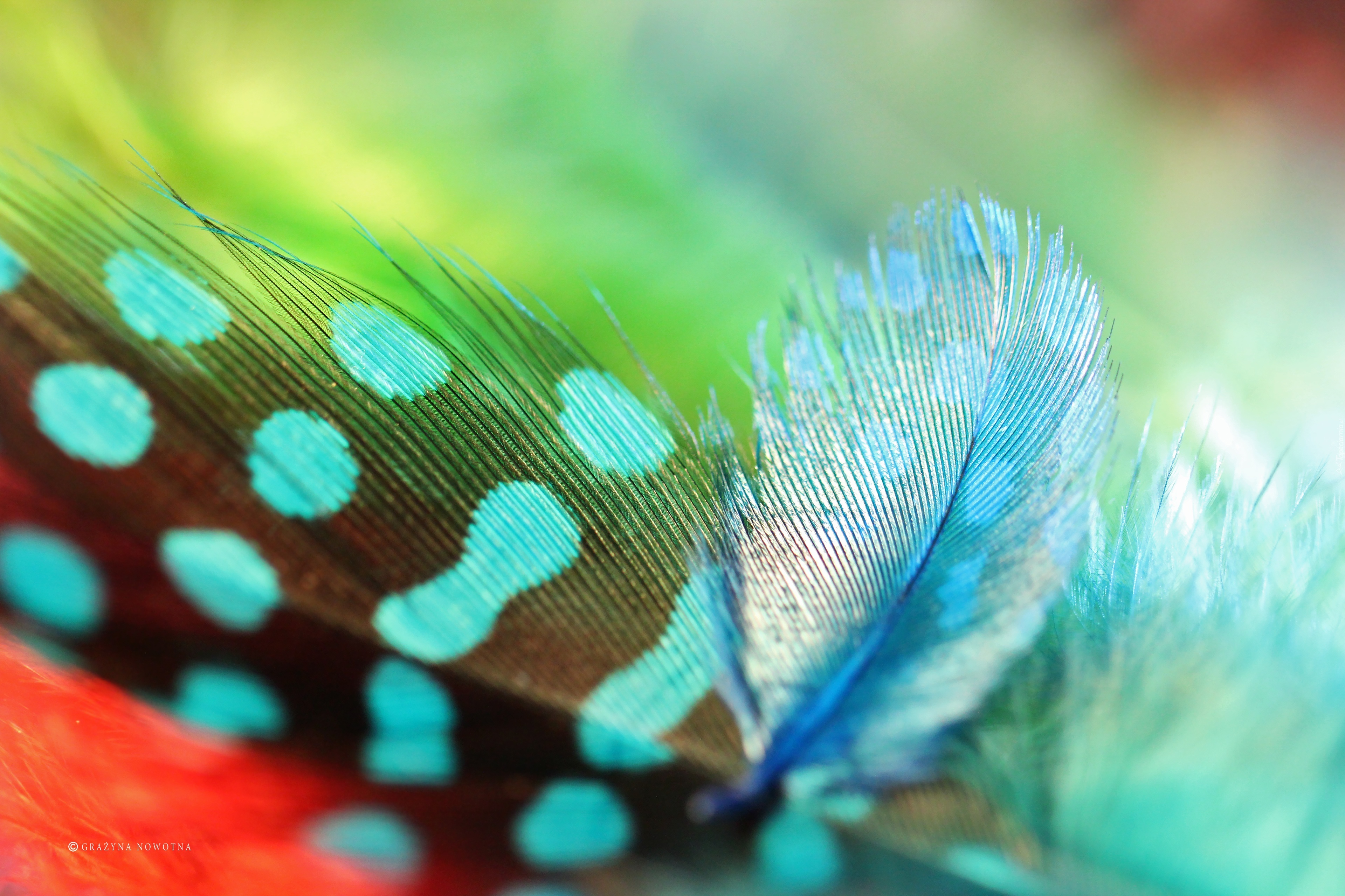 Edytor tapety: Kolorowe, Piórka, Perliczki, Makro