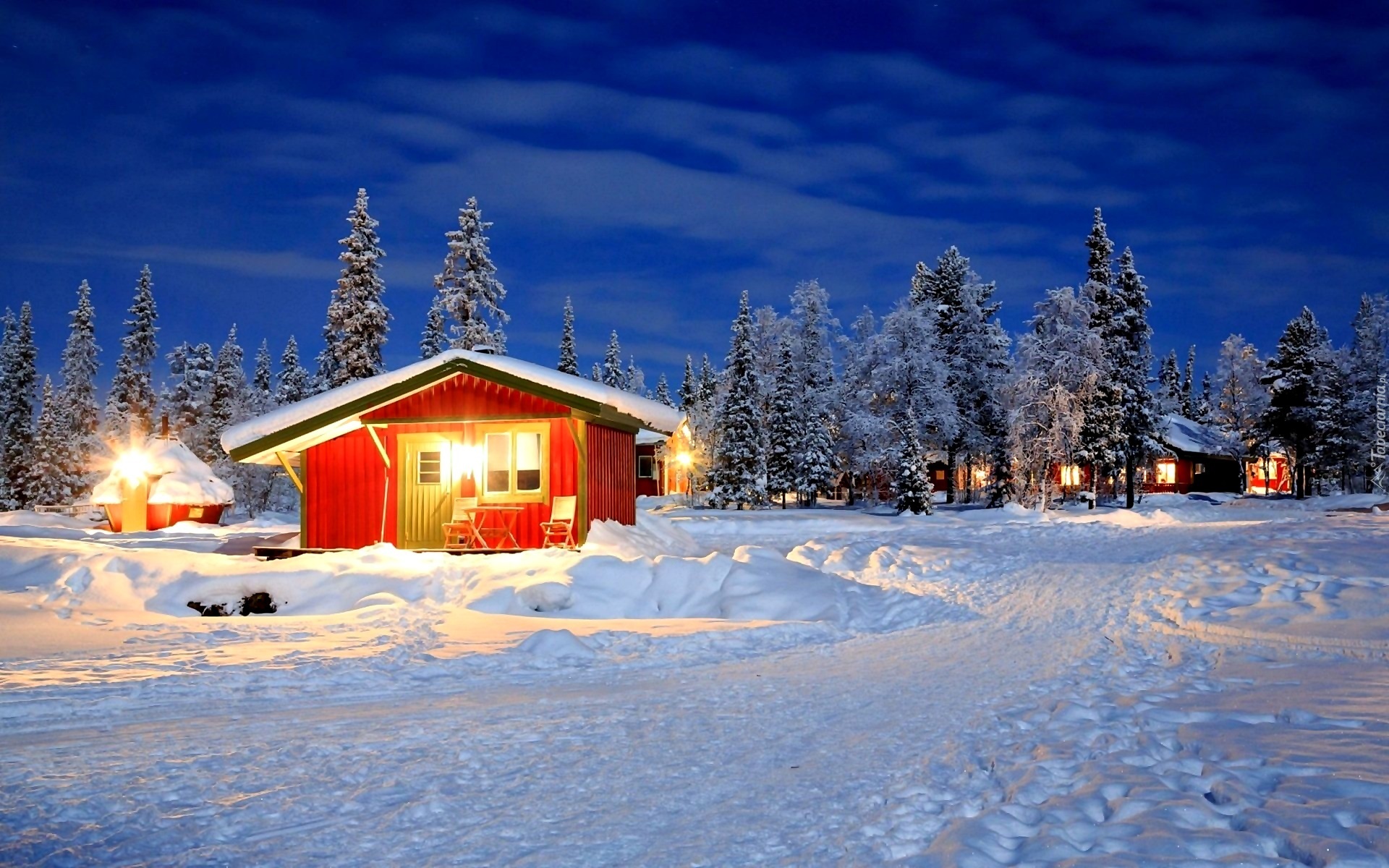 Edytor tapety: Zima, Domy, Noc, Finlandia