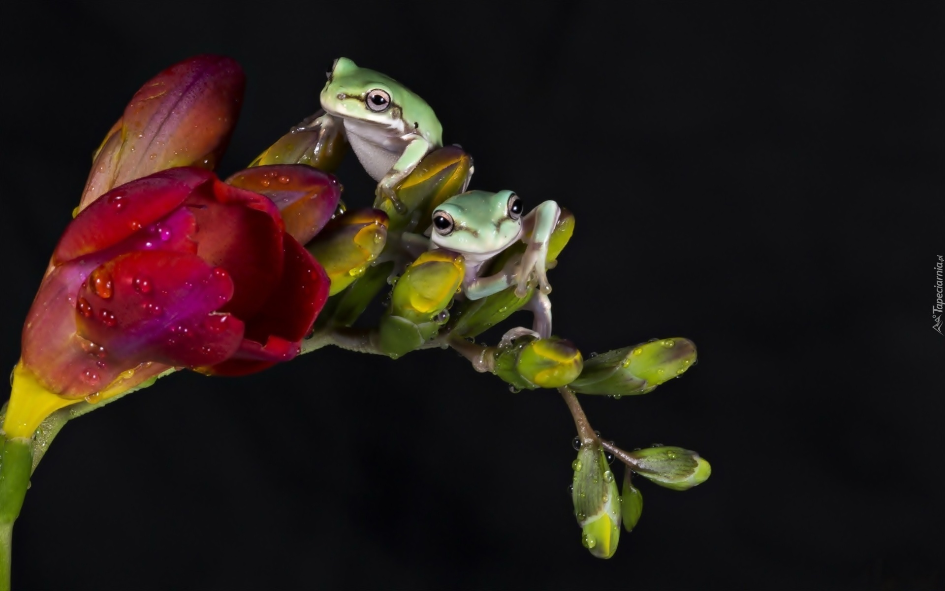 Edytor tapety: Dwie, Żabki, Rzekotki, Kwiat, Pączki, Rosa