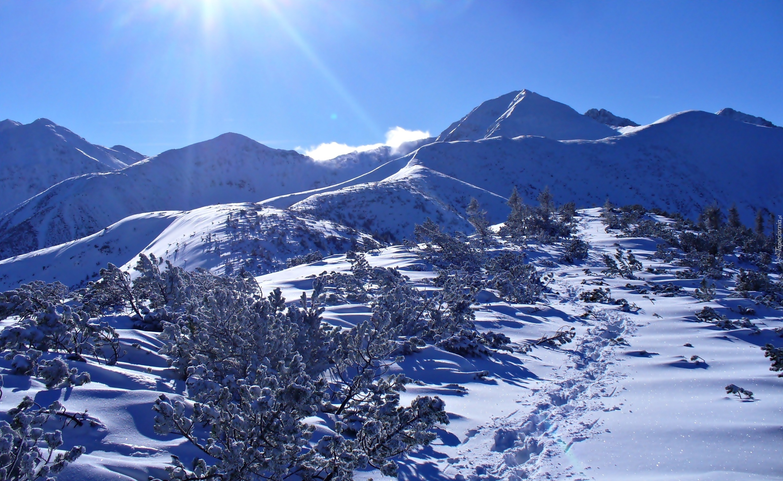 Edytor tapety: Tatry, Polska, Zima, Promienie Słońca