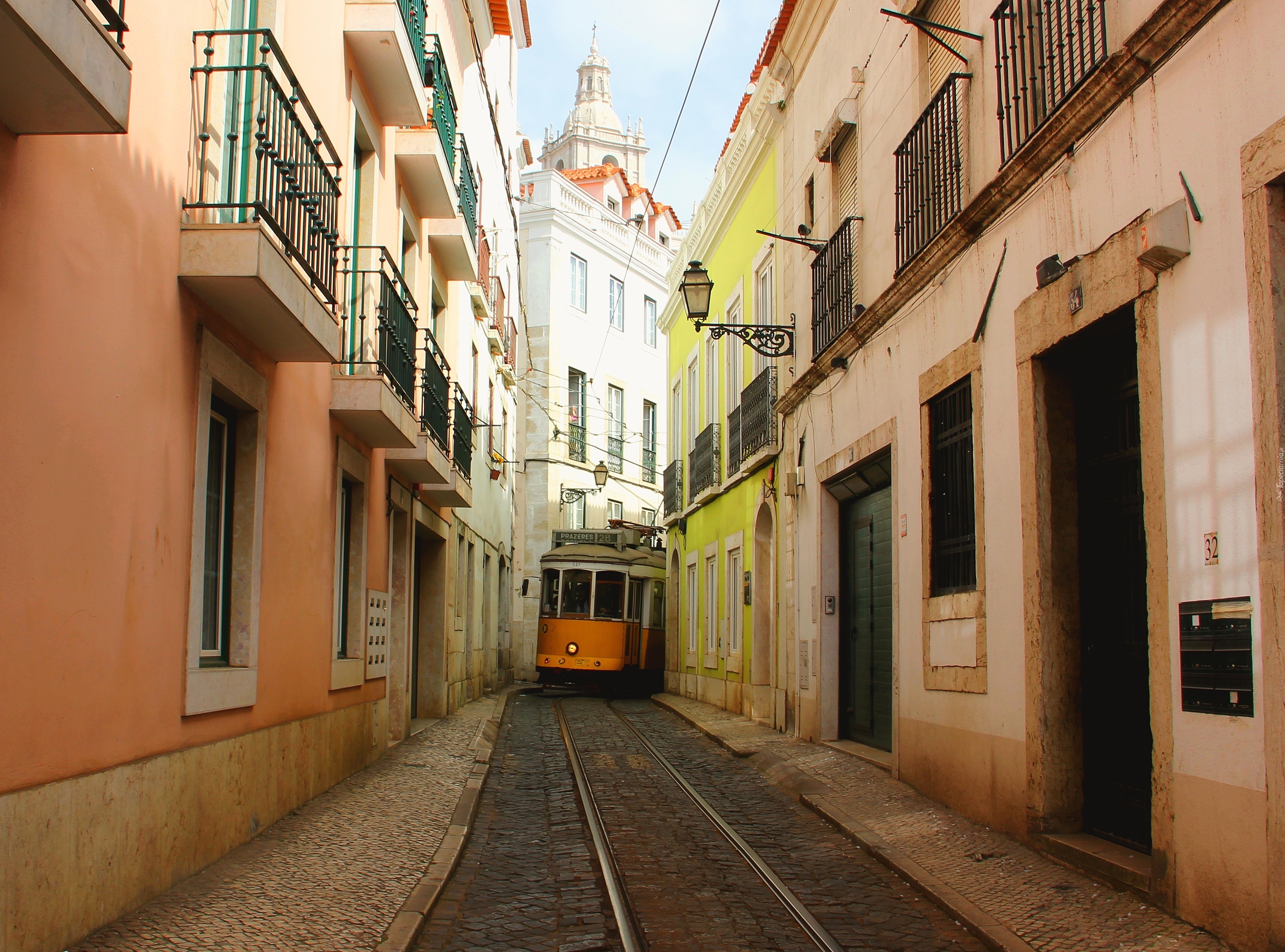 Edytor tapety: Portugalia, Lizbona, Uliczka, Tramwaj