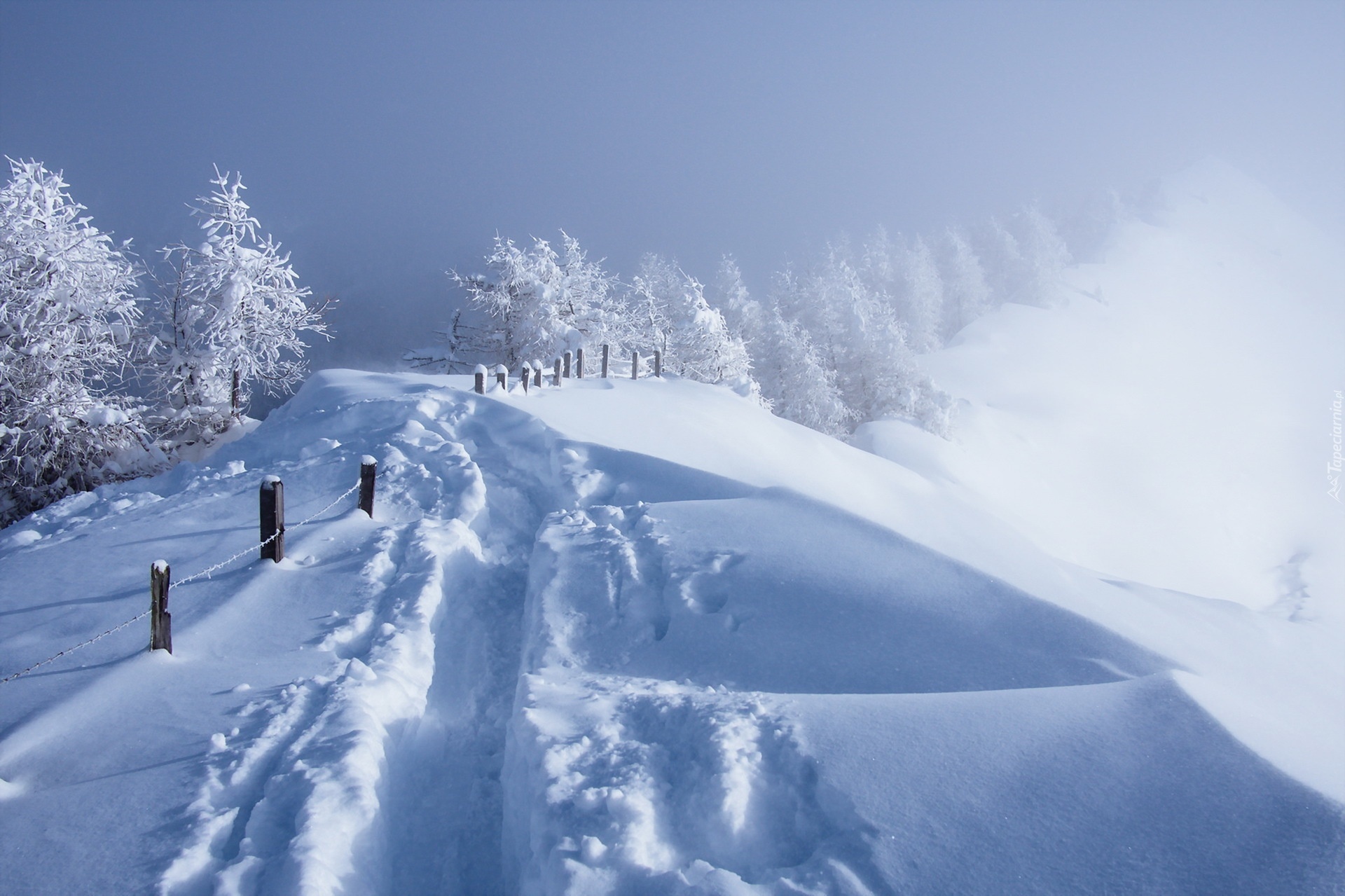 Edytor tapety: Pole, Drzewa, Śnieg, Ogrodzenie