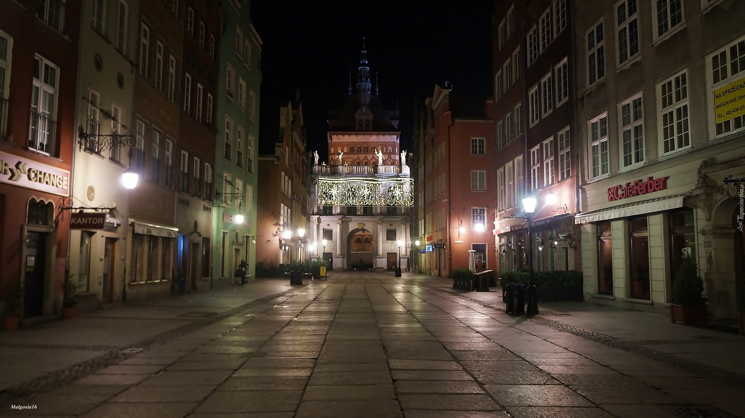 Edytor tapety: Miasto, Noc, Gdańsk, Ulica, Kamienice, Latanie
