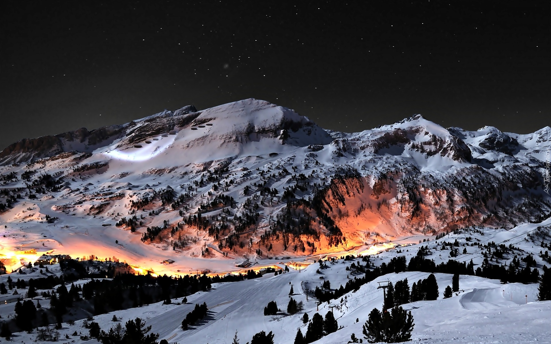 Edytor tapety: Zima, Śnieg, Góry, Noc, Z lotu Ptaka