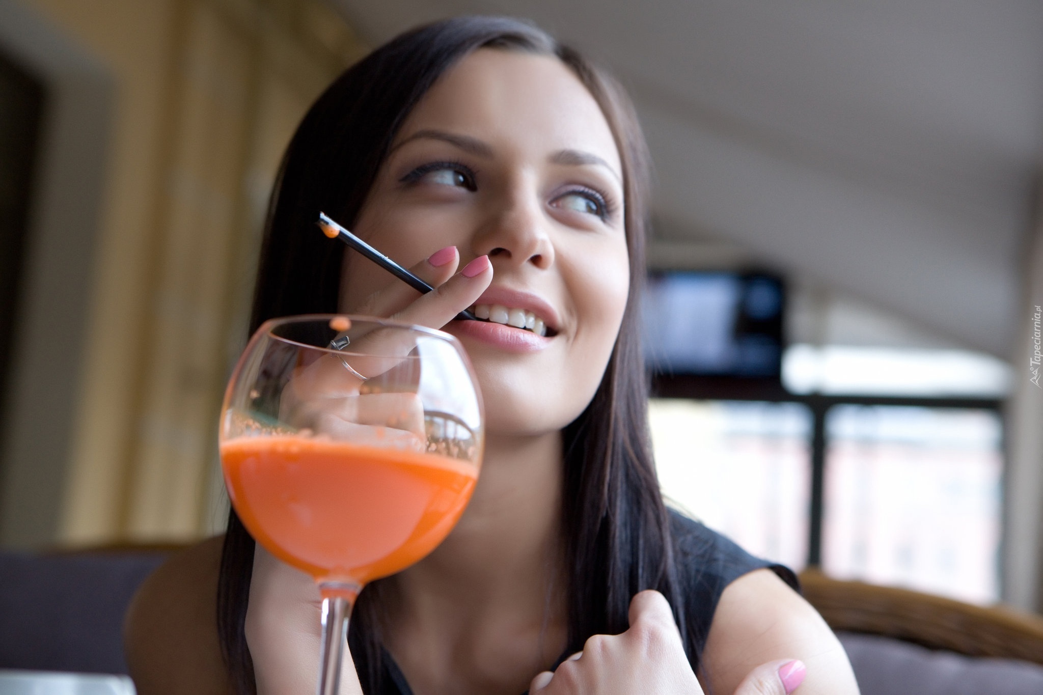 Edytor tapety: Dziewczyna, Słomka, Kieliszek, Sok